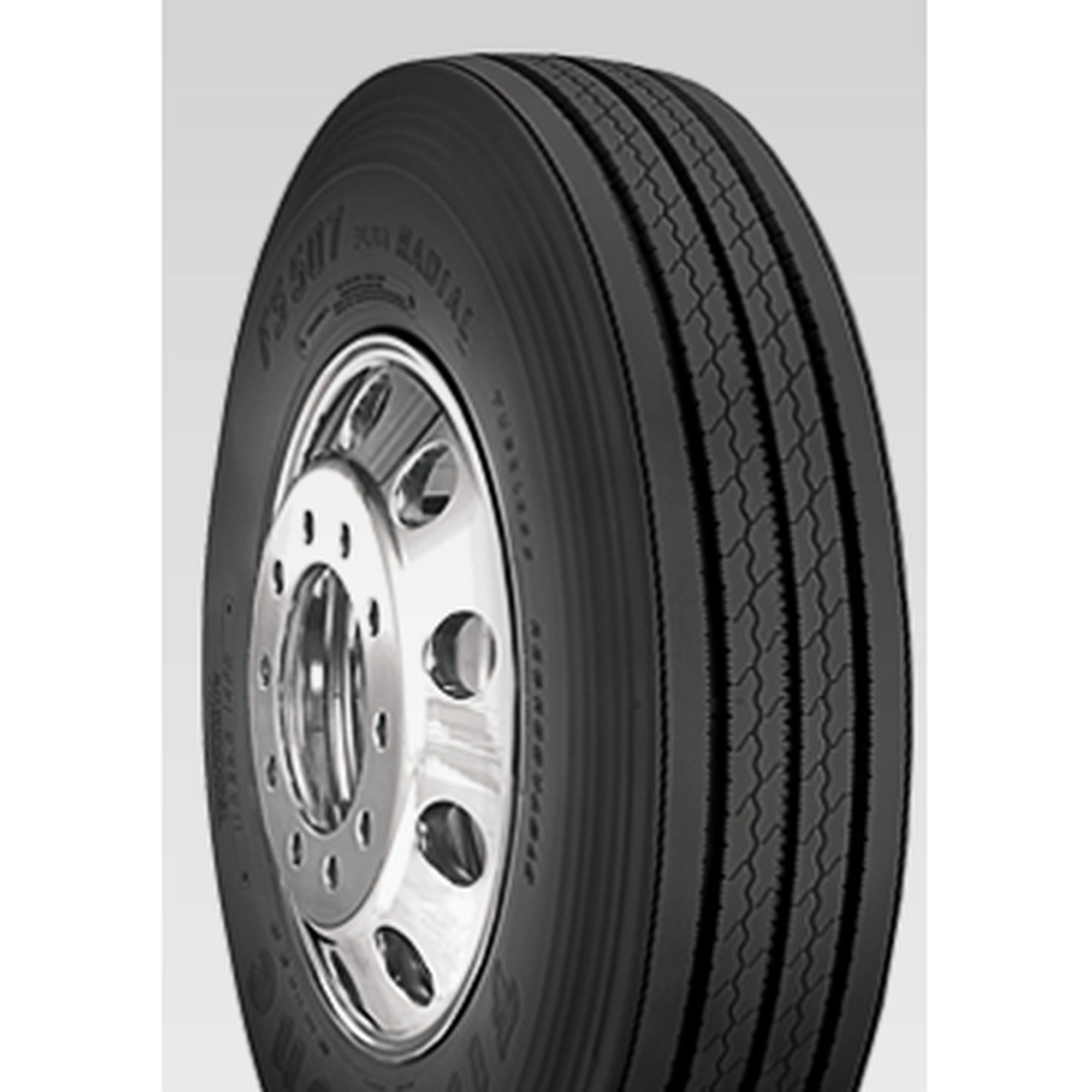 Radial steer/all-position tire, perfect for long and regional haul use, ensuring long-lasting tread wear. Rugged, retreadable casing and belt package designed for enhanced durability and retreadability. Center groove platforms on standard profile size reduce stone retention, protecting the casing. Stress-relief sipes combat irregular wear and provide excellent all-weather traction with their biting edges. Shoulder wear protector ribs and innovative tread and sidewall compounding contribute to superior fuel economy and minimize cupping and step-down wear. Size: 11R22.5 Load Range: G Product May Vary From Picture Wheel/Rim Not Included