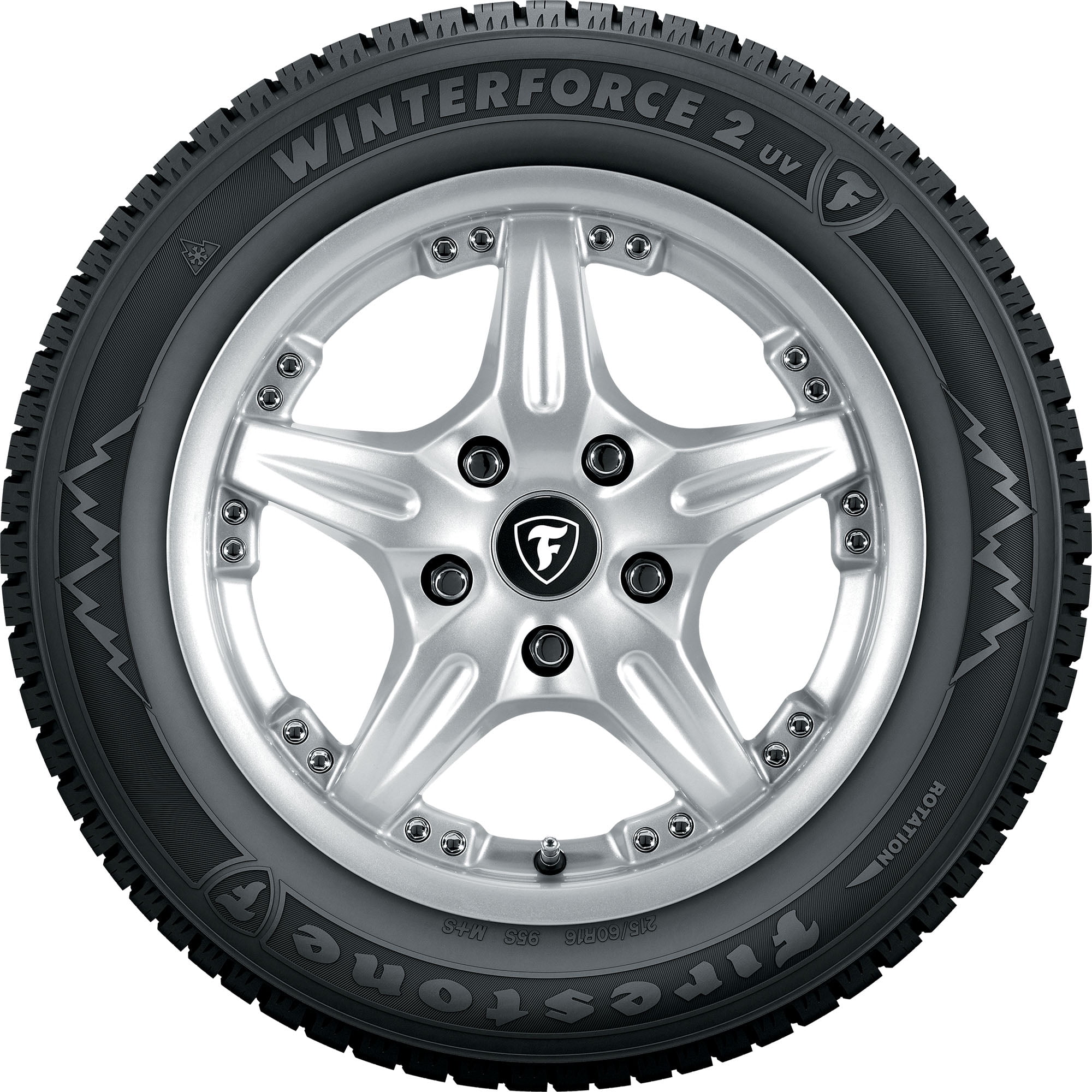 Firestone Winterforce 2 UV 225/65R17 102S OVERVIEW Designed as a winter tire for light trucks and SUVs, the Firestone Winterforce 2 UV features a specialized rubber compound that stays pliable for traction in subfreezing weather. With full-depth tread grooves, open shoulder slots, and a dense sipe network for extra biting edges in snow and slush, the Winterforce 2 UV offers superb traction and performance in the worst winter weather. Additionally, the Winterforce 2 UV is pre-drilled for easy installation of studs (where permitted) for extra traction and grip in extreme winter conditions.