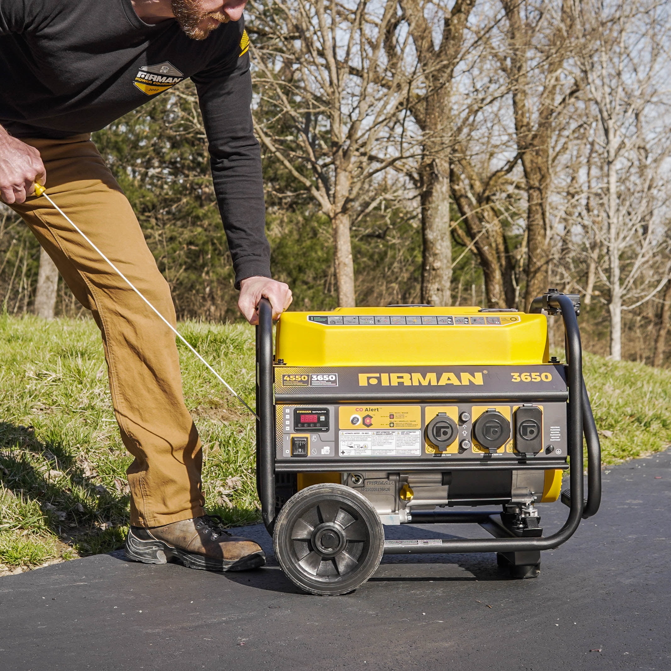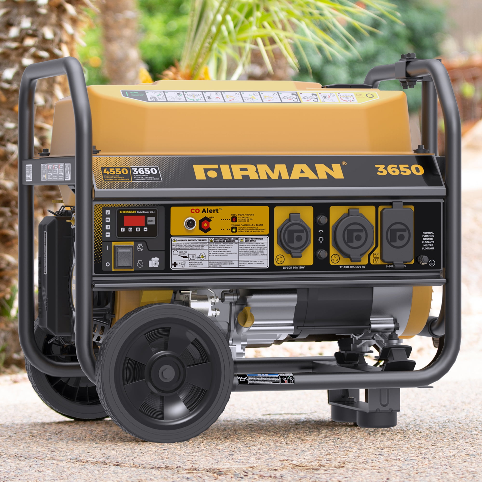 FIRMAN P03613 4550/3650 Watt Gas Portable Generator equipped with CO shutoff alert system.