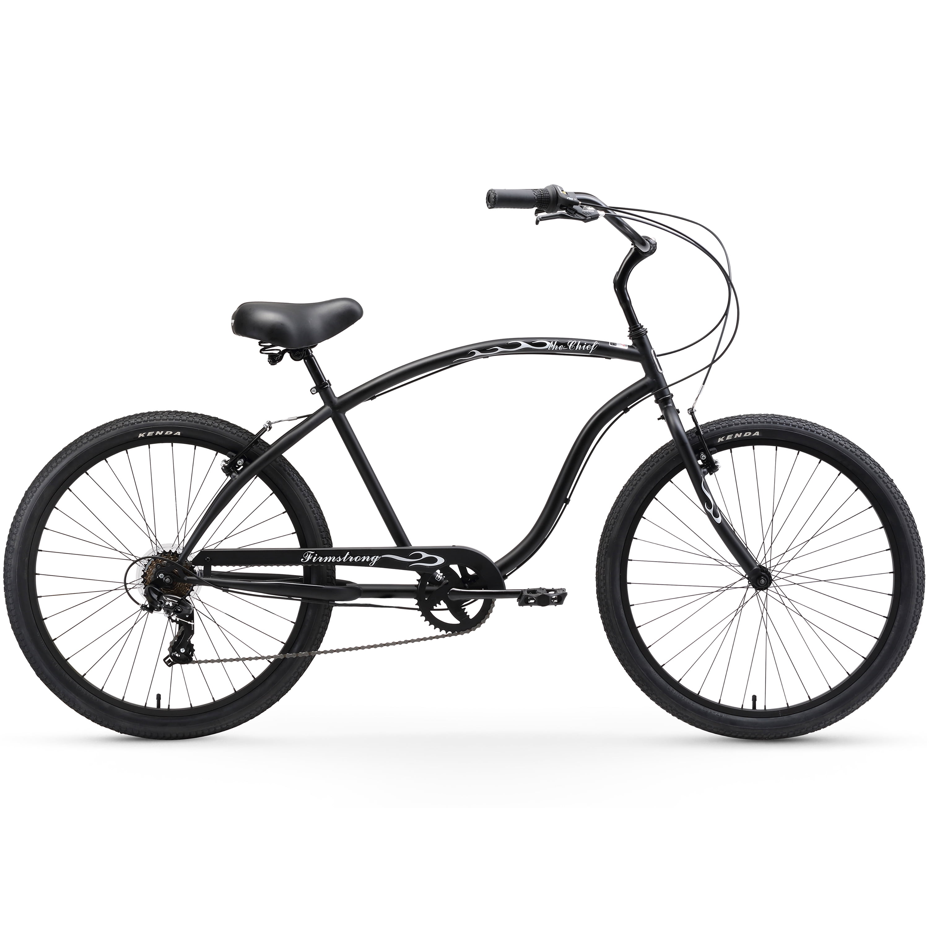 The Firmstrong Men’s Beach Cruiser is the perfect for any guy looking to cruise in style. Featuring a modern elongated design that is ideal for long rides or climbing hills. The 17-inch durable steel frame allows for more space to stretch out and wheels look polished against the wide, matte tires with waffle tread for solid gripping. Available in a single, three or seven speed option, you’ll be ensured a smooth and stylish ride as the coaster brakes allow for easy stopping. When you’re not speeding to a halt, you can rest your hands on the height and tilt adjustable handlebars complete with stylish synthetic leather grips. With the Firmstrong Men’s Beach Cruiser, you’ll always enjoy your ride down the boardwalk!
