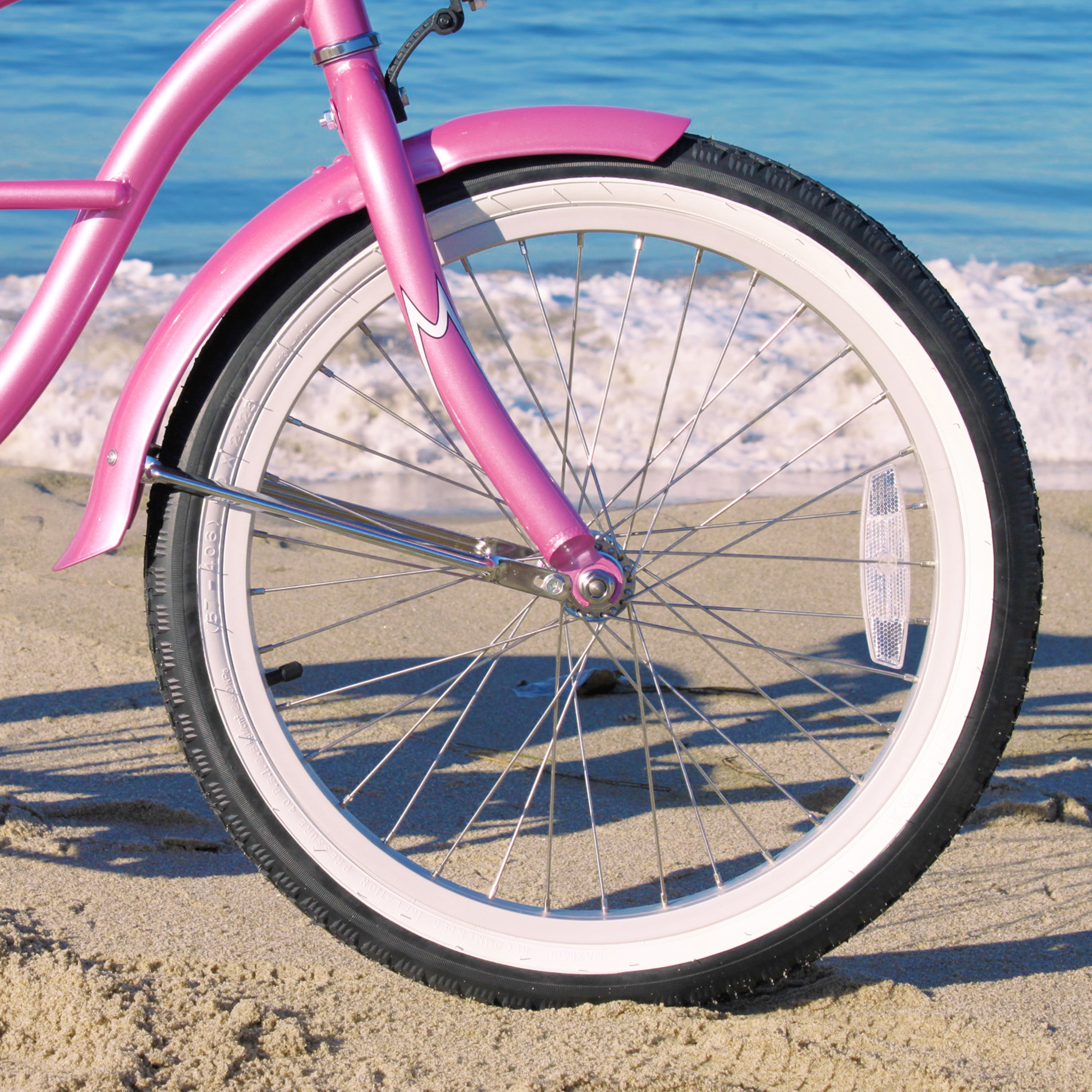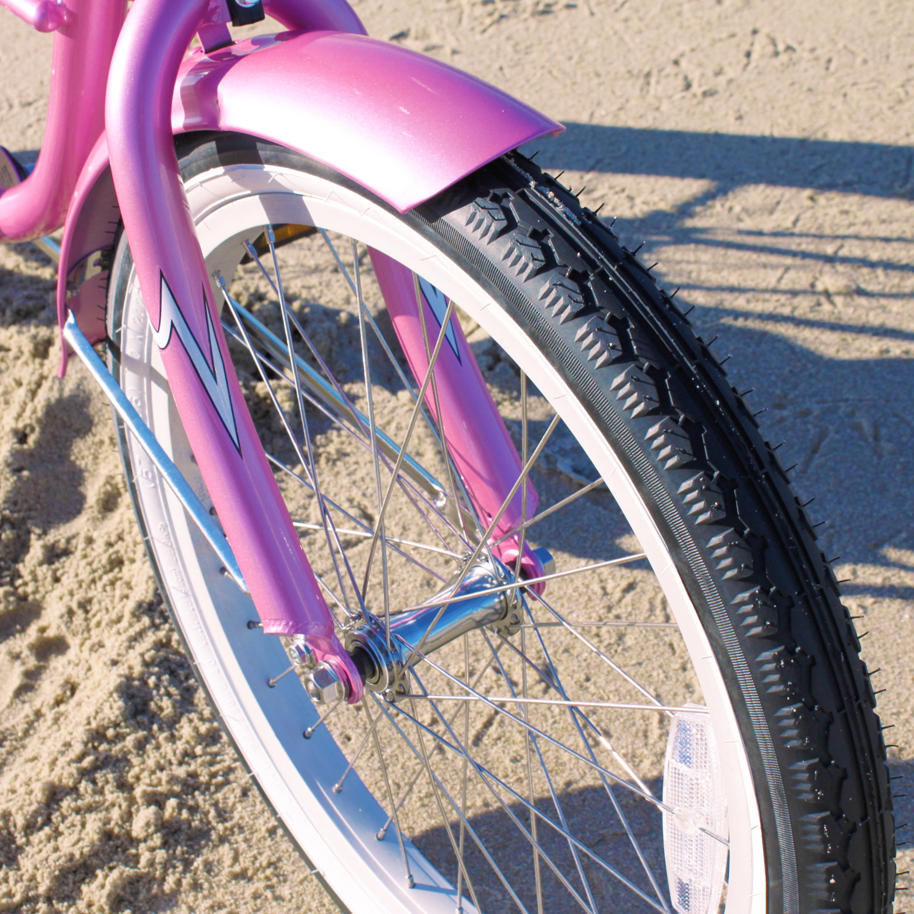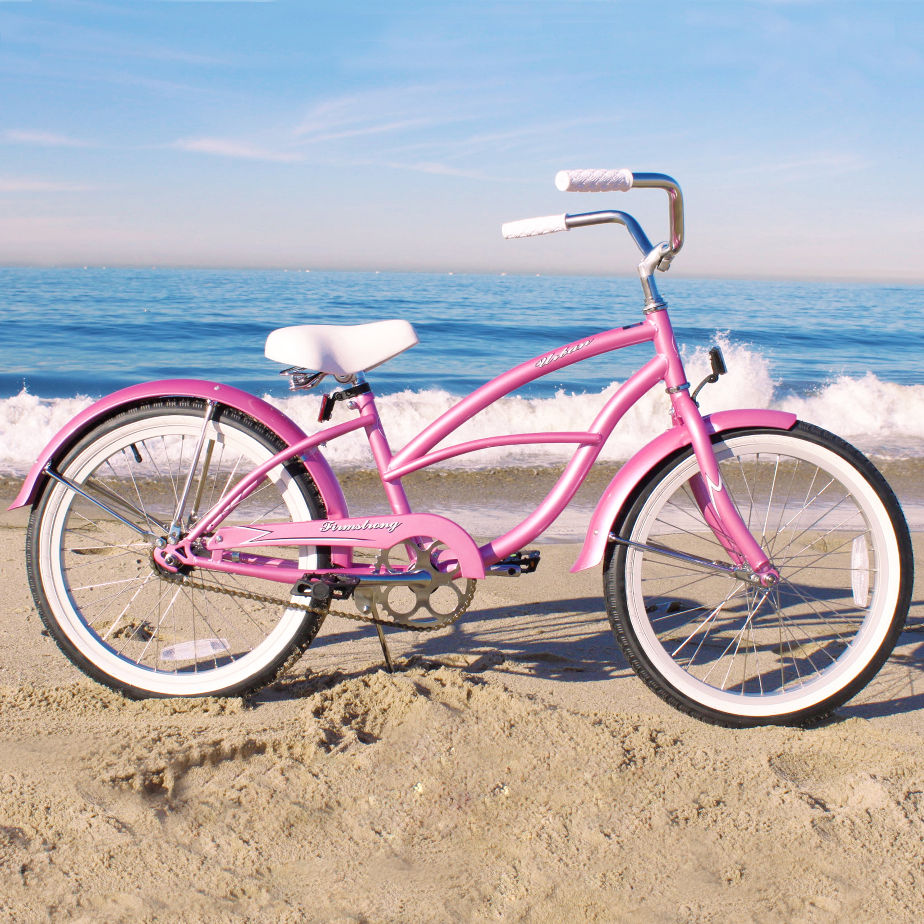 The Firmstrong urban girl beach cruiser bicycle features a classic curved design and fun pops of color that are ideal for cruising around the neighborhood. The 13″ durable steel frame and 20″ wheels shine against the wide, whitewall tires with waffle tread for solid gripping. You will be ensured a smooth and stylish ride with this 20″ cruiser bicycle as the dual-spring oversized seat has extra cushioning and when you’re not speeding to a halt using the back-pedal coaster brakes, you can rest your hands on the high-density foam grips. With the Firmstrong urban girl beach cruiser bicycle, you will always enjoy your ride about town. It’s a wonderful choice for a variety of environments such as the beach, around town on the sidewalk, the park, and more for a sturdy and smooth ride. Enjoy an afternoon on the go with friends and family and enjoy the view while gliding across any surface, in comfort and style.