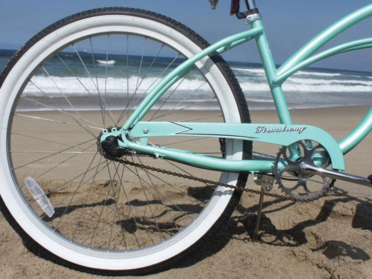 The Firmstrong Women?s Urban Lady Beach Cruiser features a classic curved design that is ideal for riding around the city, on the boardwalk or up a hill to a scenic viewpoint. The 13.5-Inch durable steel frame and 24-Inch wheels shine against the wide, whitewall tires with waffle tread for solid gripping. Available in both a single and three speed option, you?ll be ensured a smooth and stylish ride as the front and rear handbrakes can be used for easy stopping. When you?re not speeding to a halt, you can rest your hands on the high-density foam grips. With the Firmstrong Urban Lady Beach Cruiser, you?ll always enjoy your ride about town!