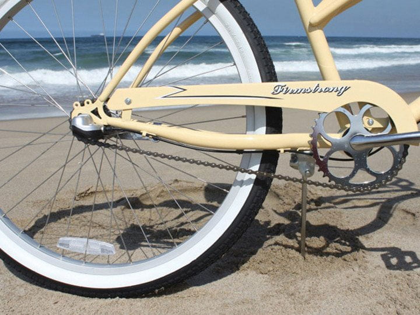 The Firmstrong Women?s Urban Lady Beach Cruiser features a classic curved design that is ideal for riding around the city, on the boardwalk or up a hill to a scenic viewpoint. The 13.5-Inch durable steel frame and 24-Inch wheels shine against the wide, whitewall tires with waffle tread for solid gripping. Available in both a single and three speed option, you?ll be ensured a smooth and stylish ride as the front and rear handbrakes can be used for easy stopping. When you?re not speeding to a halt, you can rest your hands on the high-density foam grips. With the Firmstrong Urban Lady Beach Cruiser, you?ll always enjoy your ride about town!