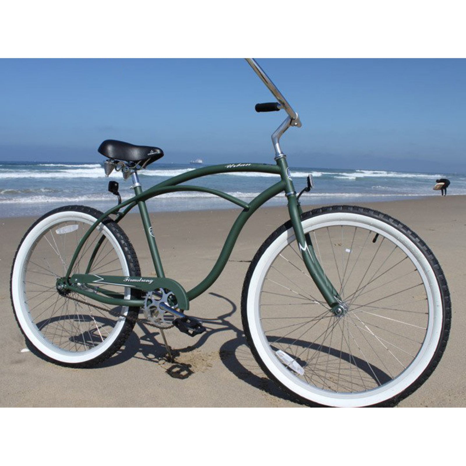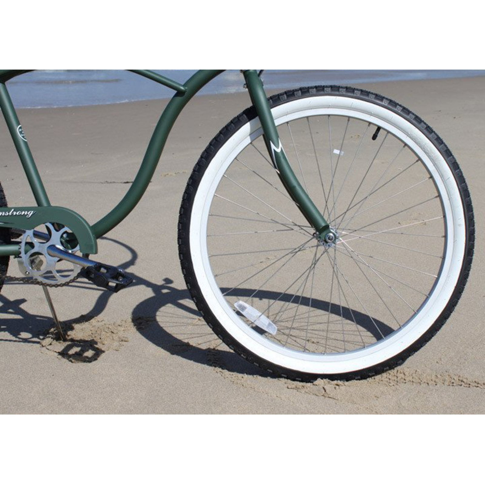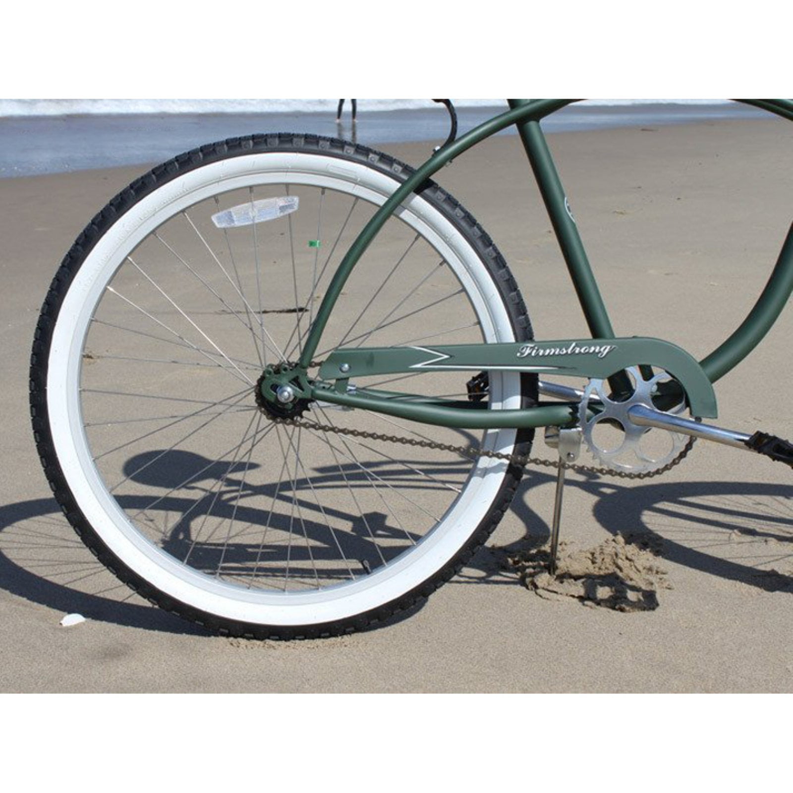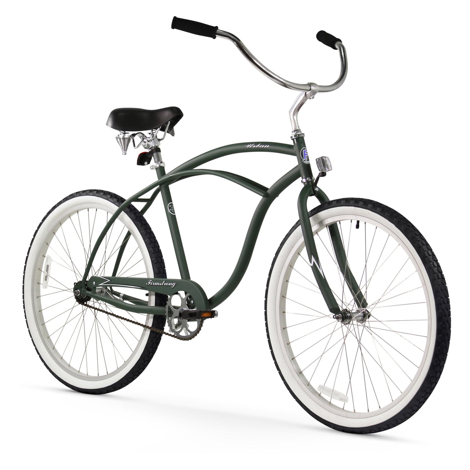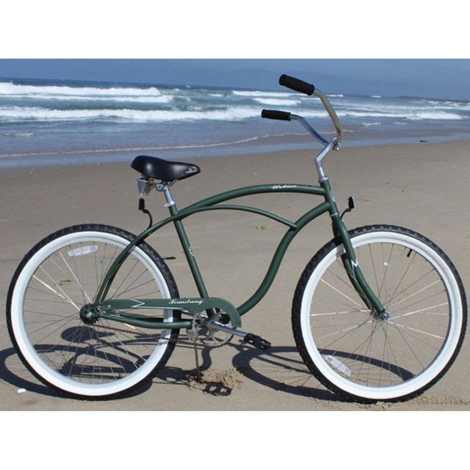 The Firmstrong Men?s Urban Speed Beach Cruiser is the perfect for any guy looking to cruise in style. Featuring a classic design with a modern twist, it is ideal for riding along the neighborhood or along the boardwalk. The 19-inch durable steel frame allows for more space to stretch out and wheels look polished against the wide, whitewall tires with waffle tread for solid gripping. Available in a single, three or seven speed option, you?ll be ensured a smooth and stylish ride as the front and rear coaster brakes allow for easy stopping. When you?re not speeding to a halt, you can rest your hands on the adjustable handlebars complete with stylish synthetic leather grips. With the Firmstrong Men?s Urban Speed Beach Cruiser, you?ll always enjoy your ride down the boardwalk!