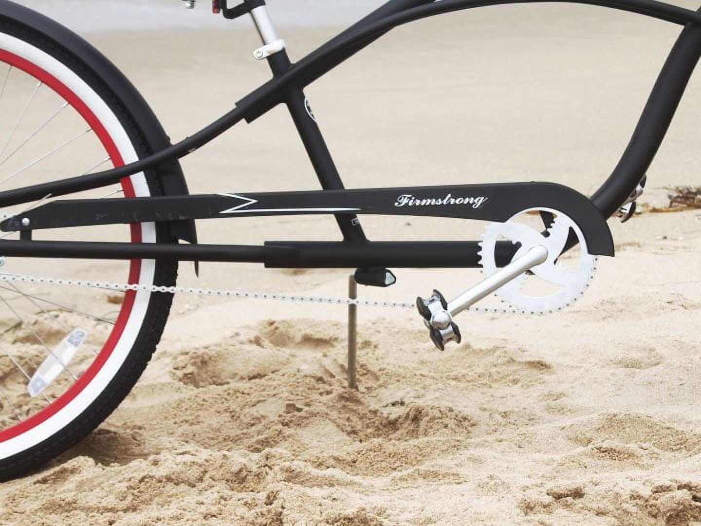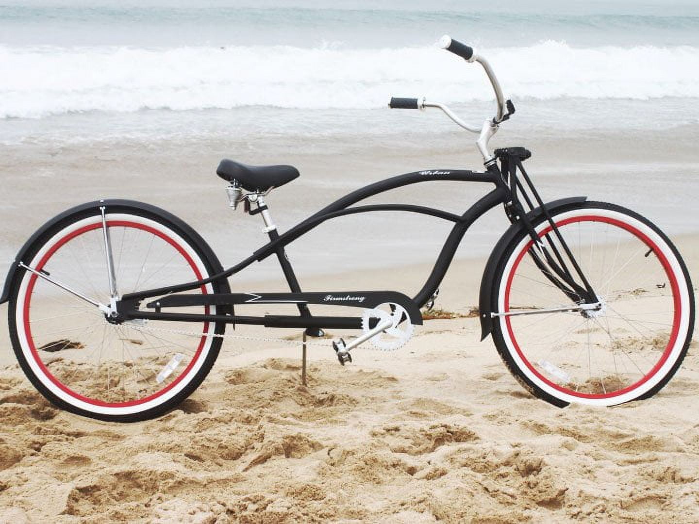 The Firmstrong Urban Man Deluxe Beach Cruiser features a low ride, elongated chopper design that is ideal for riding around the neighborhood or cruising the boardwalk. The 13-Inch steel frame and wheels stand out against the wide, whitewall tires with waffle tread for solid gripping. Available in a single speed option, you?ll be ensured a smooth and stylish ride as the pedal-backwards coaster brake can be used for easy stopping. When you?re not speeding to a halt, you can rest your hands on the motorcycle style handgrips. Blending style, comfort and functionality perfectly, with the Firmstrong Urban Man LRD Beach Cruiser, you?ll always enjoy your ride down the boardwalk!