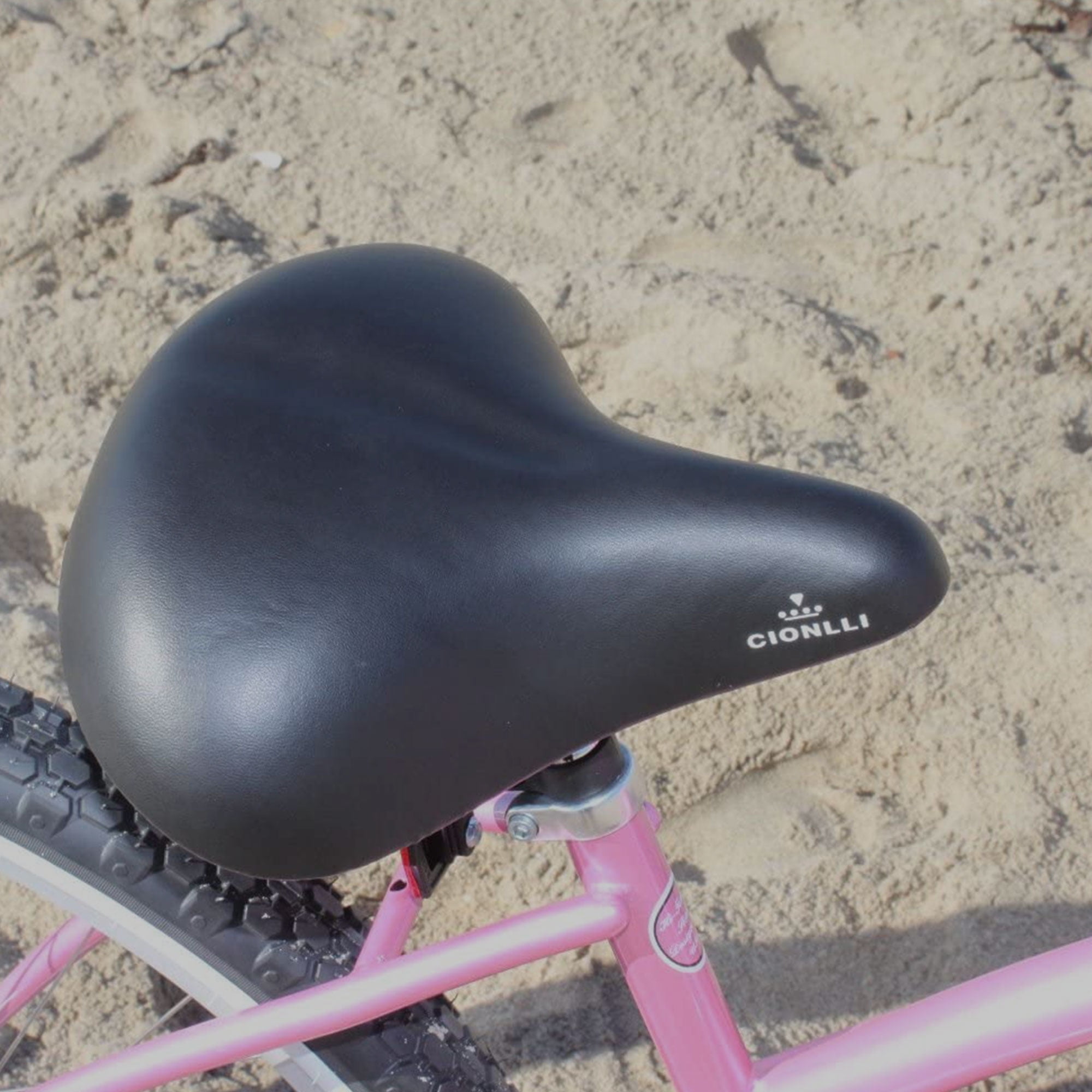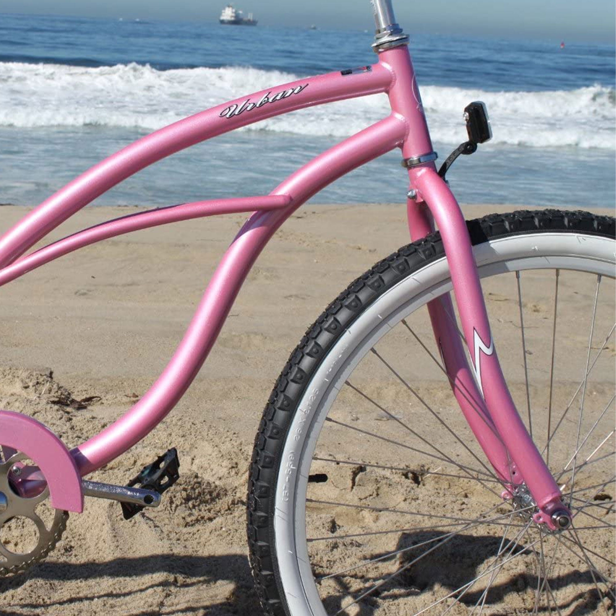Great recreational riding bike that fits most women 5.2-5.11 feet tall; 15.5-inch extended frame creates more space between rider and handlebars Single-speed bike features a pedal-backward coaster brake for easy pedaling and smooth braking All black 2.13-inch wide tires with a white wall provide a cushioned, relaxed ride for easy rolling Steel, durable handlebars with foam black grips add a stylish touch and additional comfort while riding Classic padded dual-coil spring saddle seat and handlebar height and tilt can be adjusted to fit the rider properly Pedals: Resin body Material: Steel Color: Pink Dimensions (L x W x H): 70 x 28 x 45 inches Weight: 32.5 pounds Manufacturer warranty: 1-year warranty