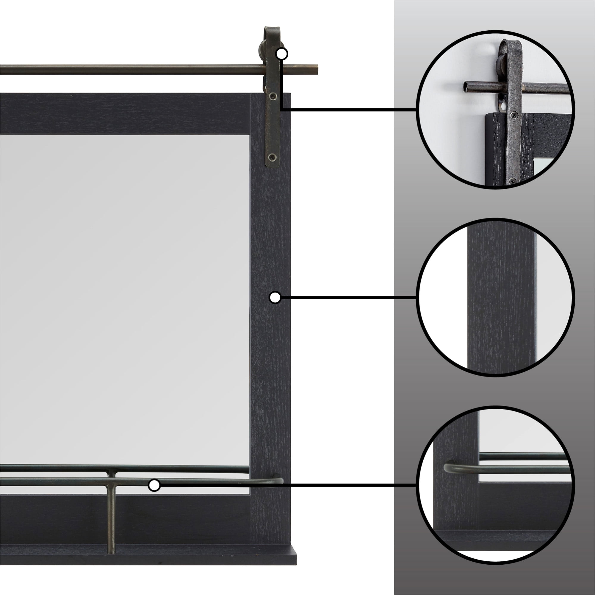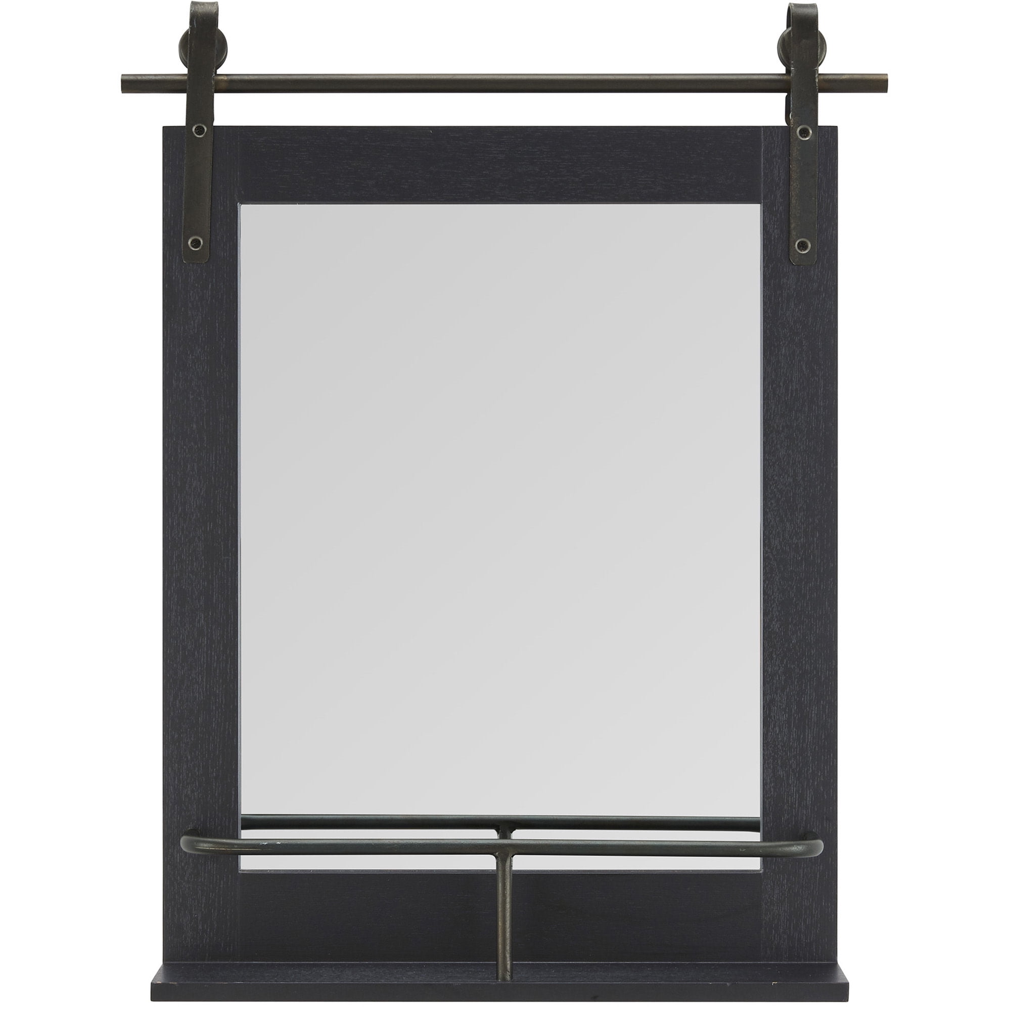 Nothing ties a room together better than a traditional mirror, and the one you choose to place in your home should reflect your personality and style. We hear you. Inspired by a rustic farmstead door, our FirsTime & Co.® Ingram Farmhouse Barn Door Mirror With Shelf is a functional and stylish update to any space. Its black metal caster hardware and industrial shelf accent a rugged black wood frame. This versatile mirror is an eye-catching piece of wall decor perfect for an entryway or any room. Finding the right mirror to suit your style has never been easier thanks to our wide range of FirsTime & Co.® home living products.