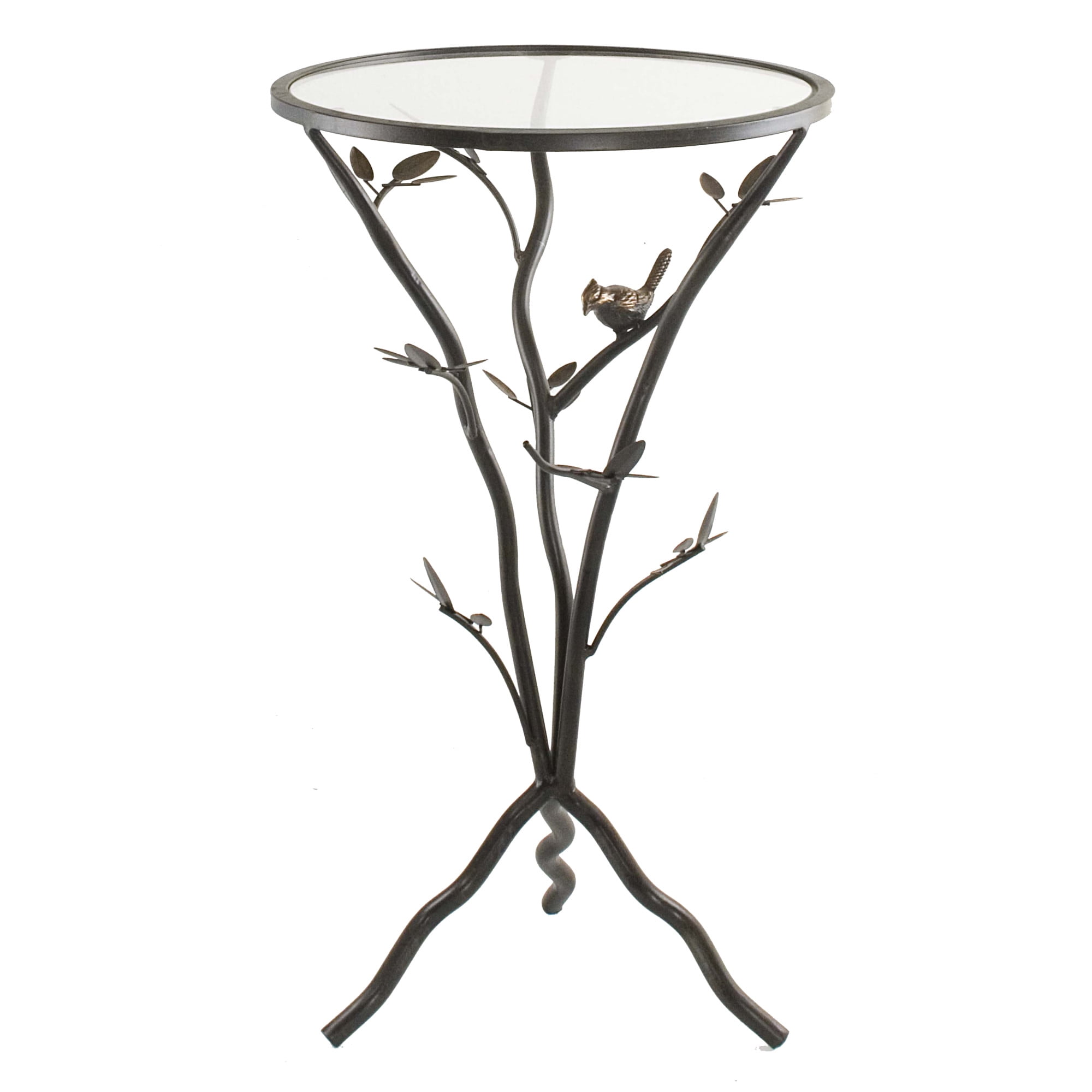 FirsTime & Co. Bronze Bird and Branches Tripod End Table, Modern, Antiqued, Round, Metal, 14 x 14 x 24 in