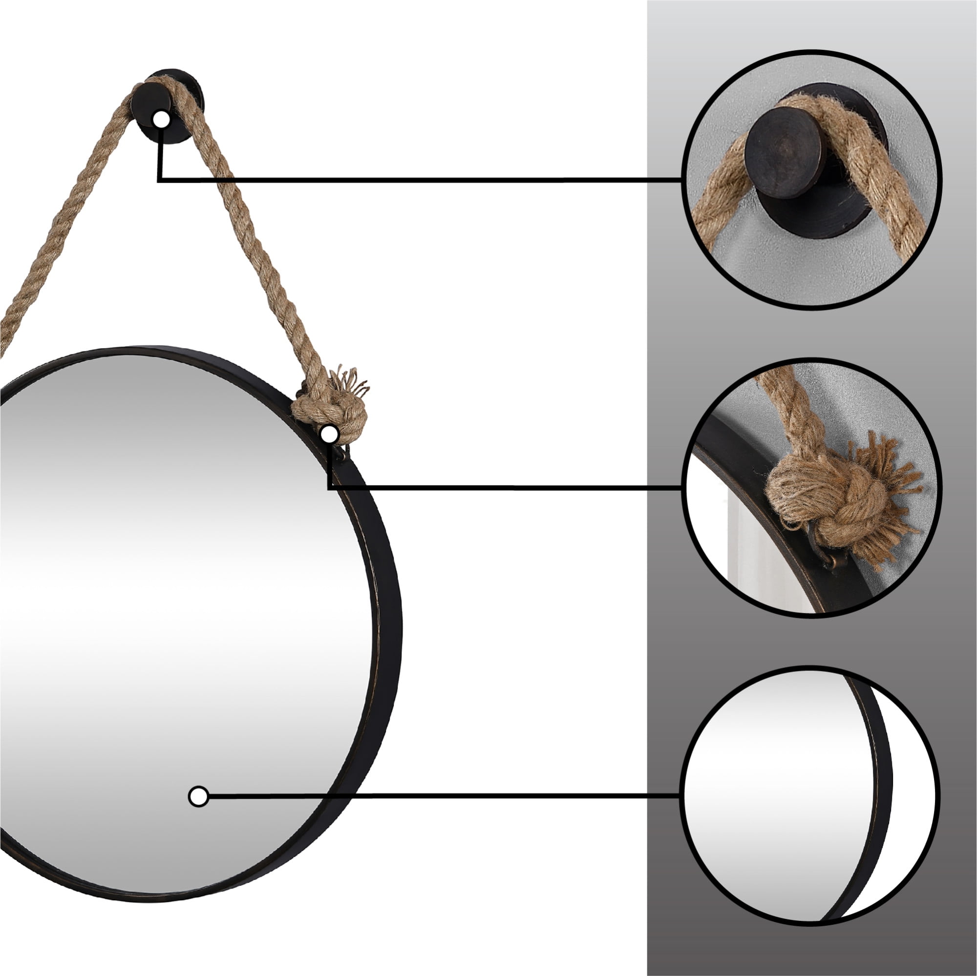 SIZE MATTERS – Our FirsTime & Co.® Dockline Round Mirror has a 33.5″ height, 22″ width and 2″ depth, making it the perfect size for any living space. IT’S IN THE DETAILS – This round mirror is crafted of a glass mirror surrounded by a metal frame with an oil rubbed bronze finish, complete with real rope and plastic hanger. HANG IN THERE – This mirror is designed to be hung on the wall THE PERFECT TOUCH – Our FirsTime & Co.® Dockline Round Mirror is a great accent piece for any home or office. Easy to assemble with step-by-step instructions included COASTAL STYLE – Whether moving into a new home or looking for a gift, make an accent statement in your entryway, kitchen, living room or bathroom with a stylish and decorative Coastal and Rustic piece from FirsTime & Co.