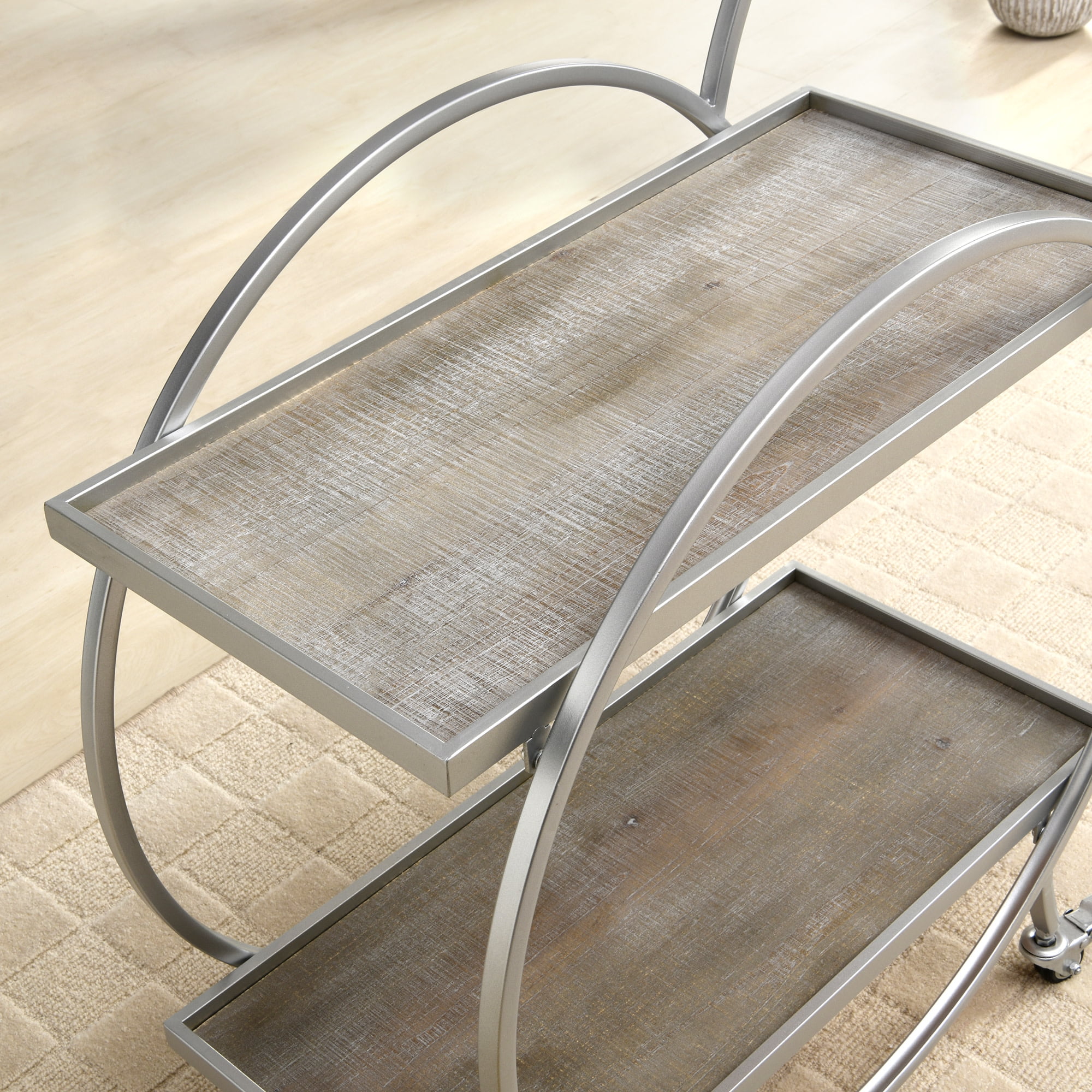 FirsTime & Co. Silver and Gray Odessa Bar Cart, Industrial, Metal, 27.5 x 14 x 33 in
