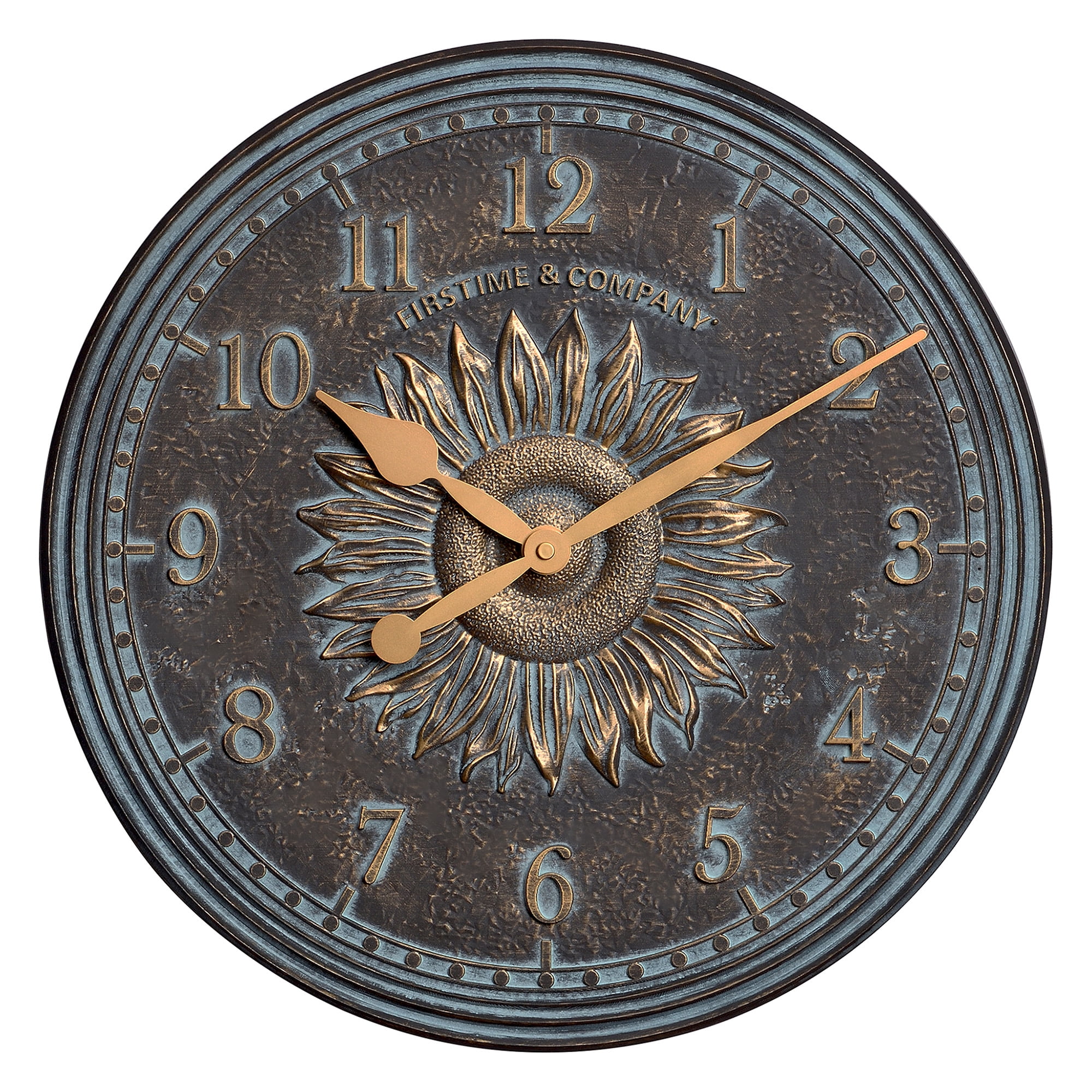 FirsTime & Co. Verdigris Calisto Sunflower Outdoor Wall Clock And Thermometer 2-Piece Set, Rustic, Analog, 16 x 1.12 x 16 in