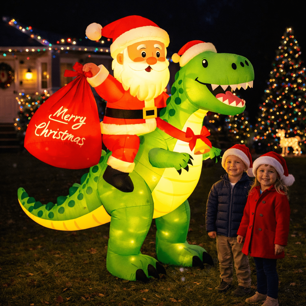 Firstness 6ft Christmas Inflatables Outdoor Decoration with LED Lights, Christmas Blow ups Santa Claus Dinosaur Xmas Decor for Party Yard Garden Lawn