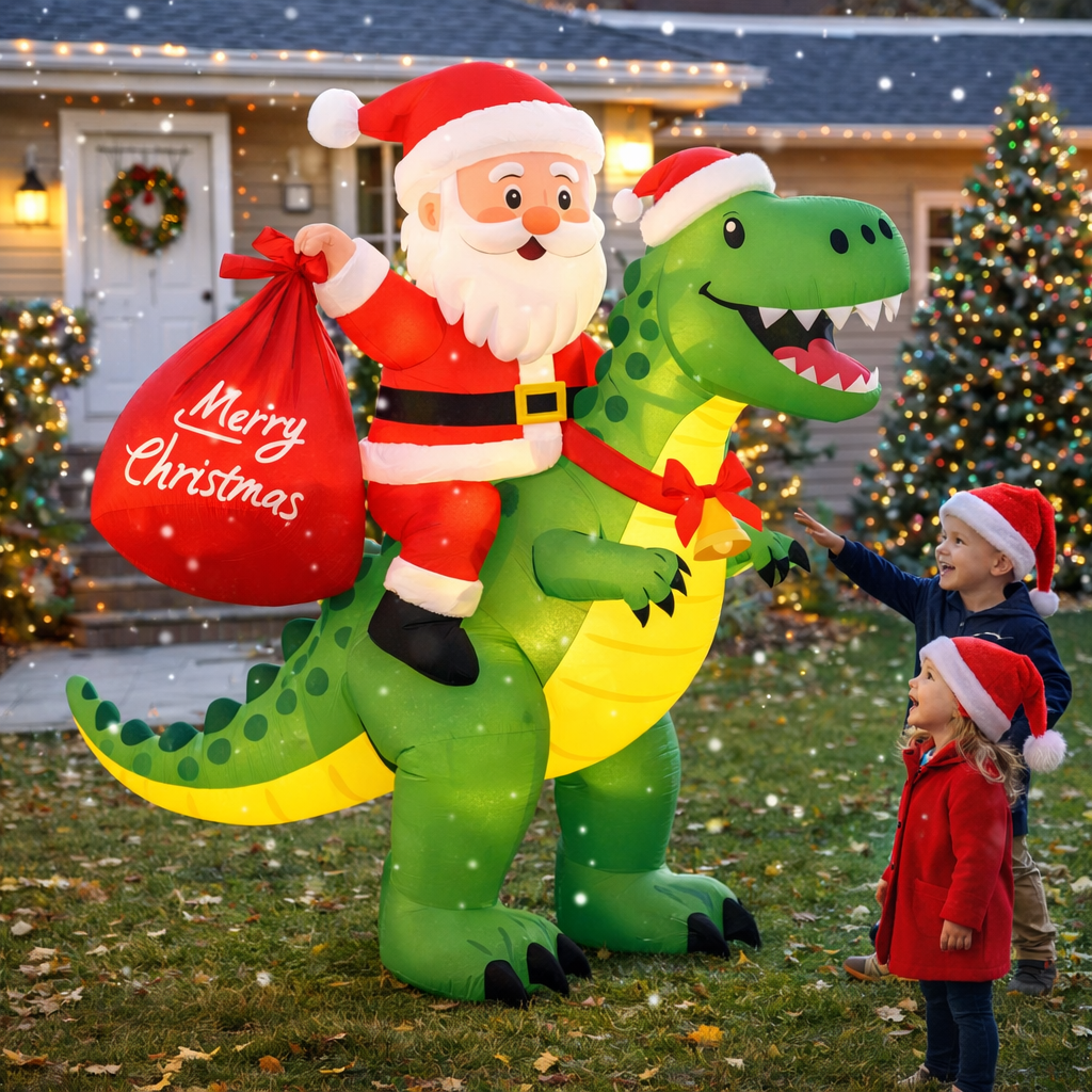 | Color | 6ft Tall Dinosaur Santa Claus |