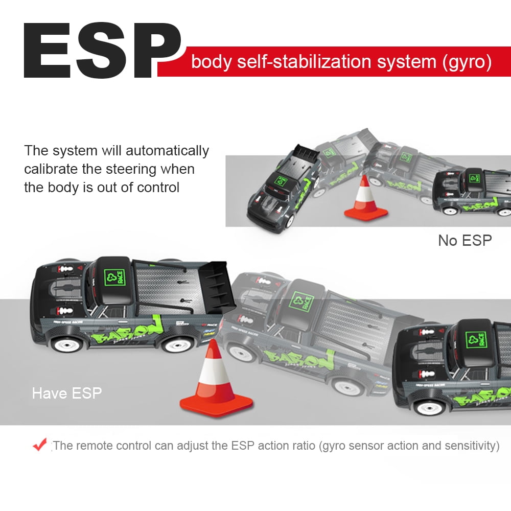 Fisca Remote Control Drift Car toy is designed as a conquerer for car racing games. 4WD system and over 35km/h high speed would provide exciting game experience. This rc racing truck is equipped with 2 sets of high quality tires, sensitive 2.4 GHz remote control system as well as strong power. So it is quite suitable for indoor and outdoor activities especially taking part in racing speed competitions without worrying about interferences. Long service time is available thanks to high quality plastic body and electronic stability system. Besides, it is more cooler becase of its 3 switchable lighting modes. It is truely an ideal present for kids or adults will certainly enjoy lots of fun from playing it.