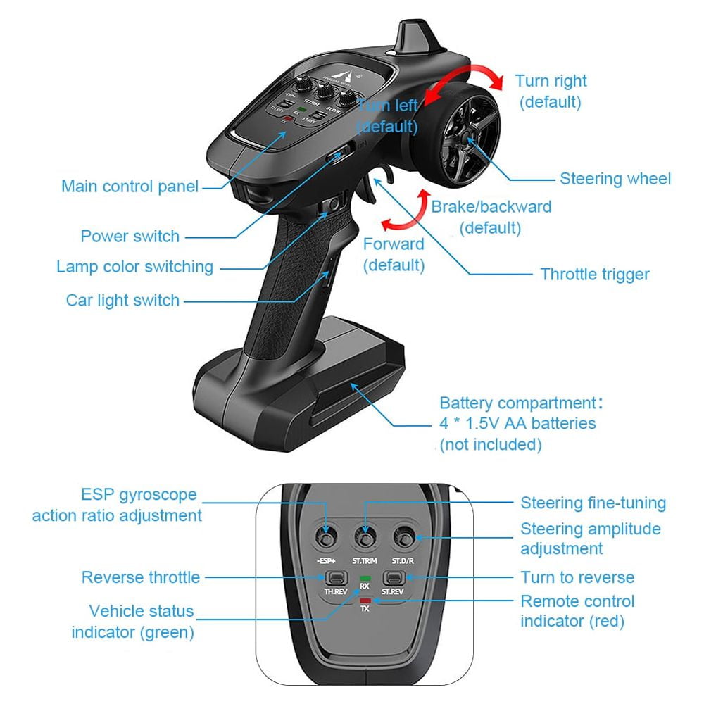 Fisca 1/16 4WD Remote Control Racing Car, 35+ Km/h High Speed : 1/16 large size with high detailed cool colorful appearance 4WD for off road fast competition Powerful motor offer high speed of 22mph ( 35+ km/h ) Bright cool light effects even at night 2 sets of tires, rallying tires for outdoors, another for drifting indoors Overcharge and excessive current protection system for long service life Proportional throttle and steering control in sensitive control system for slightly adjust driving 2.4Ghz anti-jamming remote control Metal stable springs and transmission shafts, ABS body keep firm and durable Control distance up to 160 feet Playing Time: 15 – 20 minutes Charging Time: 3 – 4 hours Battery: 7.4V 1200mAh rechargeable battery Product Dimensions: 11.8 x 5.9 x 3.9 inches Product Weight: 1.21 pounds For ages 12 years and up Package List: 1 x Race Car 1 X Controller 1 x USB Charger 4 x Drift Tires 3 x Cover Pins 2 x Wrenches 1 x Screwdriver 1 x User Manual 2 x Clamps 1 x Rechargeable Battery Warm Tips: Adult supervision is recommended Controller Requires 3 “AA” batteries(Not included) When the toy is not in use, please remove the battery