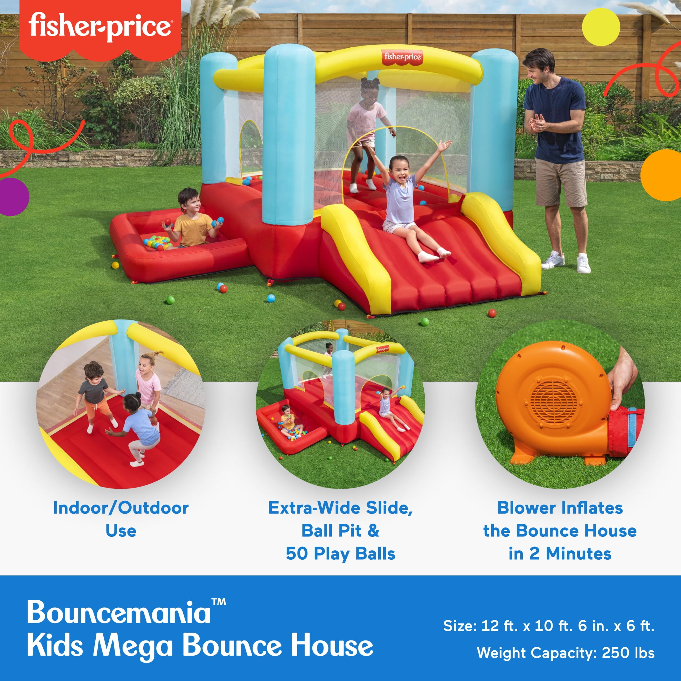 Fisher-Price Bounce House with Ball Pit and Slide, Bouncemania, Indoor/Outdoor, Ages 3+