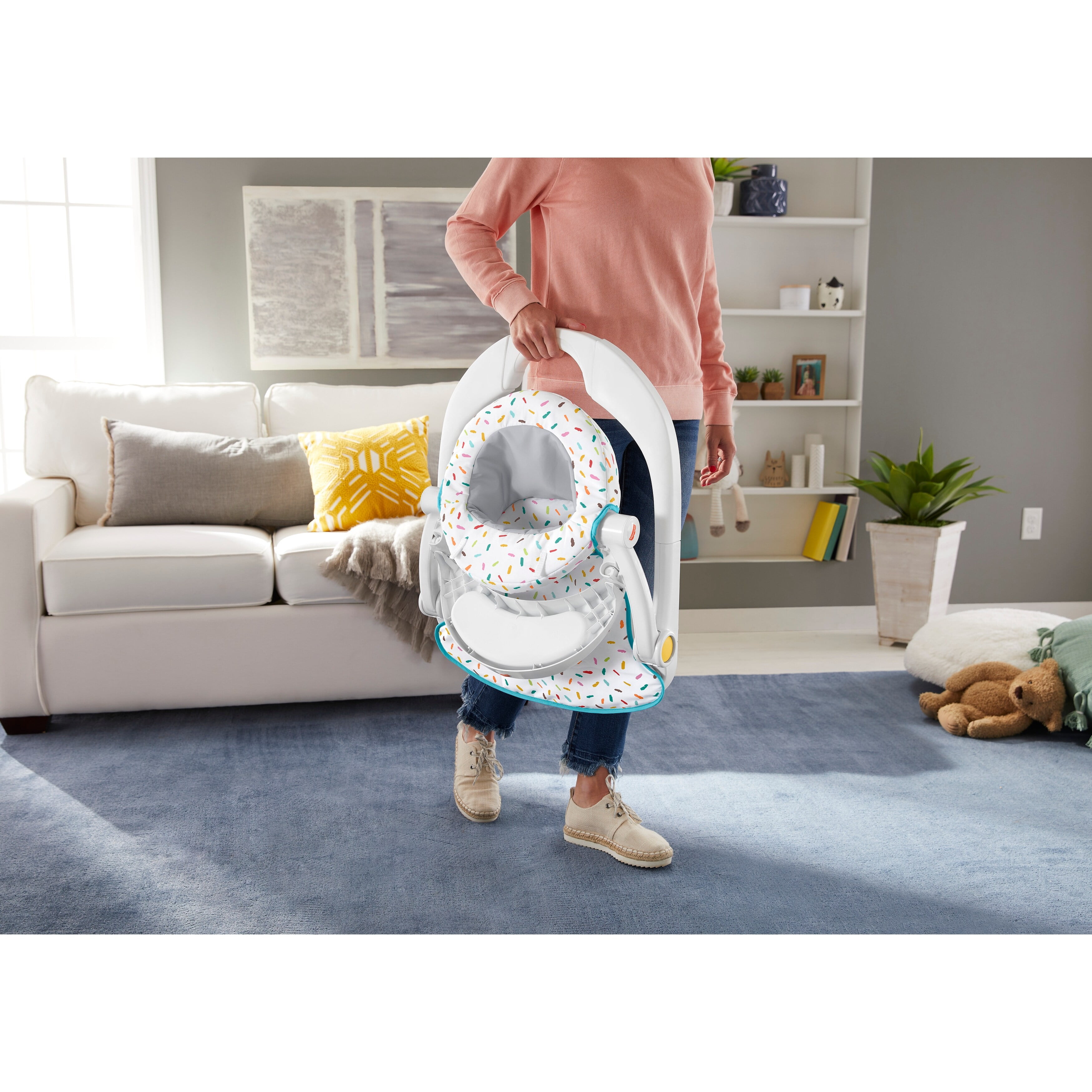 Your baby can enjoy play and snack time in one comfy spot with the Deluxe Sit-Me-Up Floor Seat from Fisher-Price