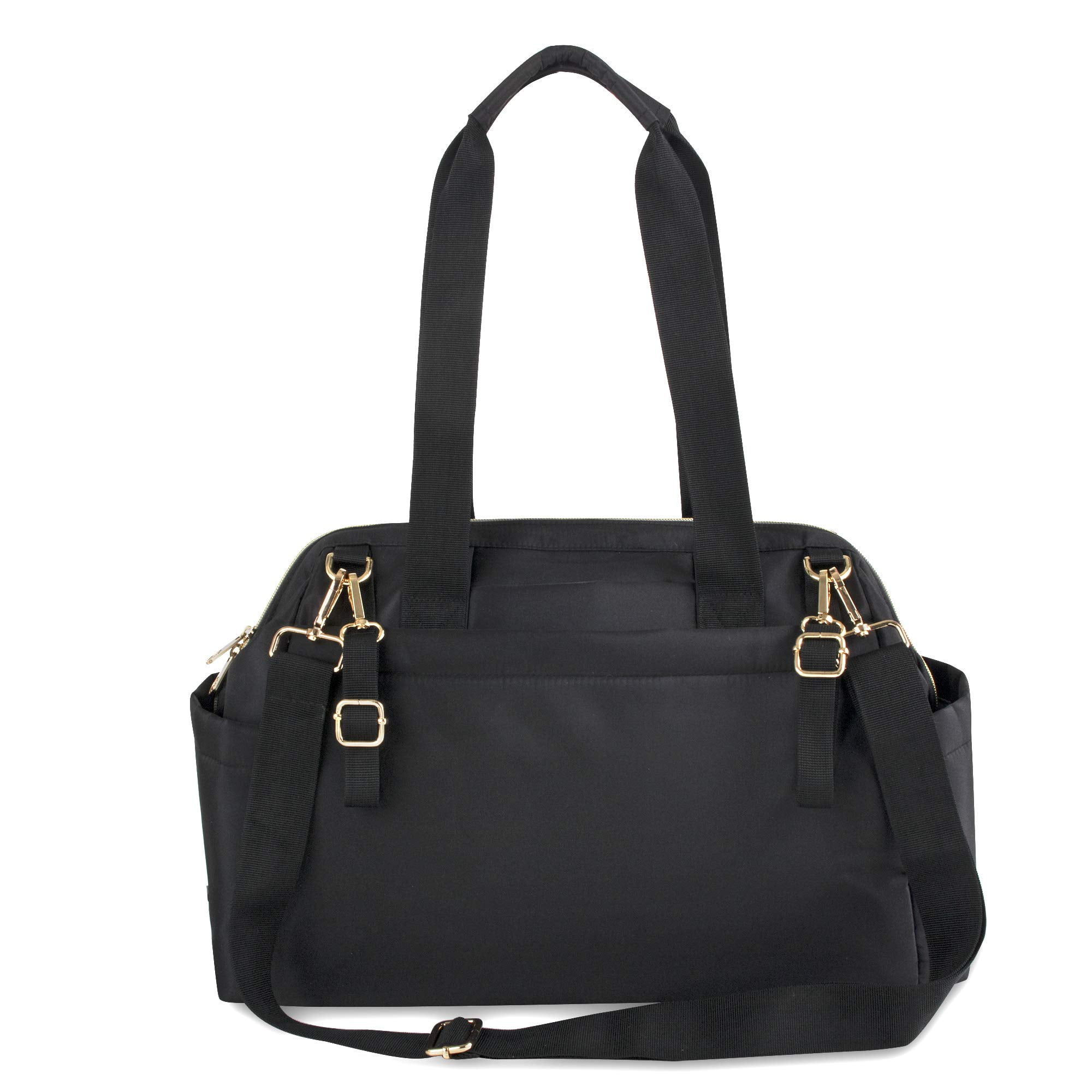 Fisher-Price Harper Quilted Convertible Crossbody Diaper Bag Tote With Shoulder Straps, Removable Luggage Strap, Matching Changing Pad, Insulated Bottle Pockets and Electronics Pocket in Black