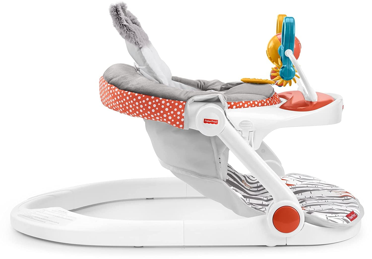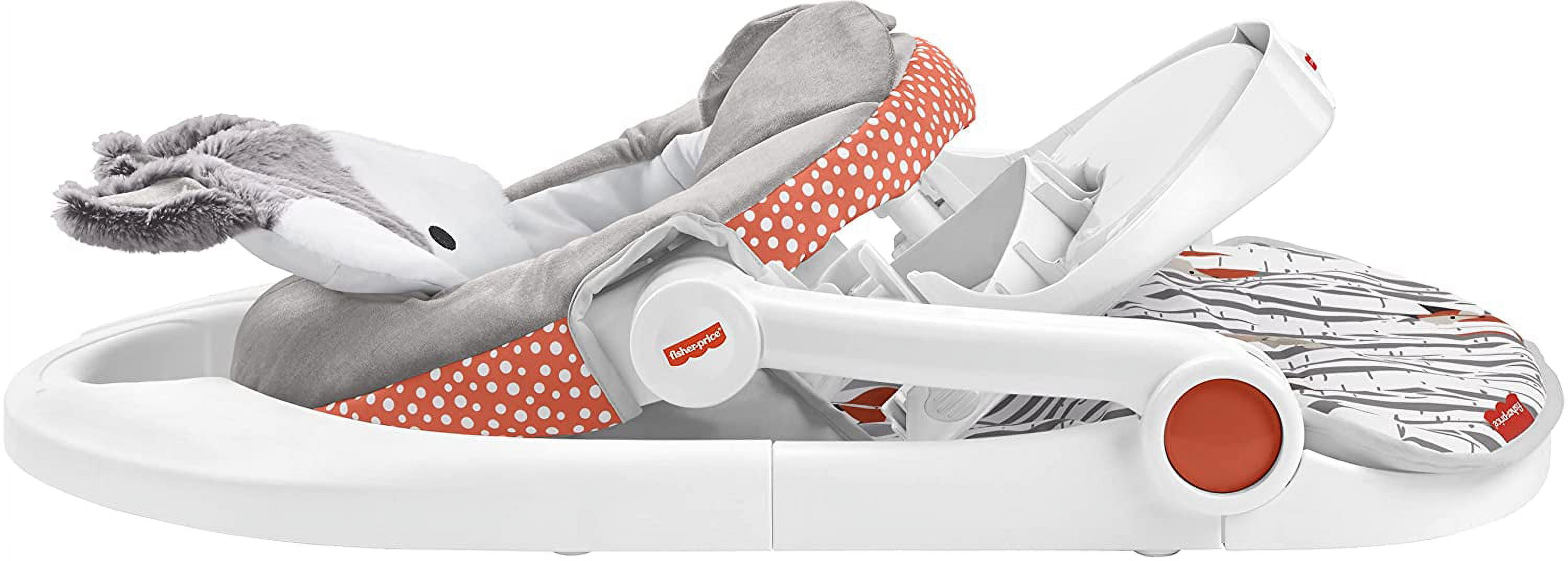 Forest-themed, portable infant chair that helps support your baby in an upright position Extra-soft fabrics, plush fox head rest, and 2 crinkle “paws” with a squeaker underneath for sensory play Removable toy bar and dishwasher-safe snack tray for convenient play and feeding Machine-washable, Peek-a-boo Fox seat pad Folds flat for space-saving storage or travel