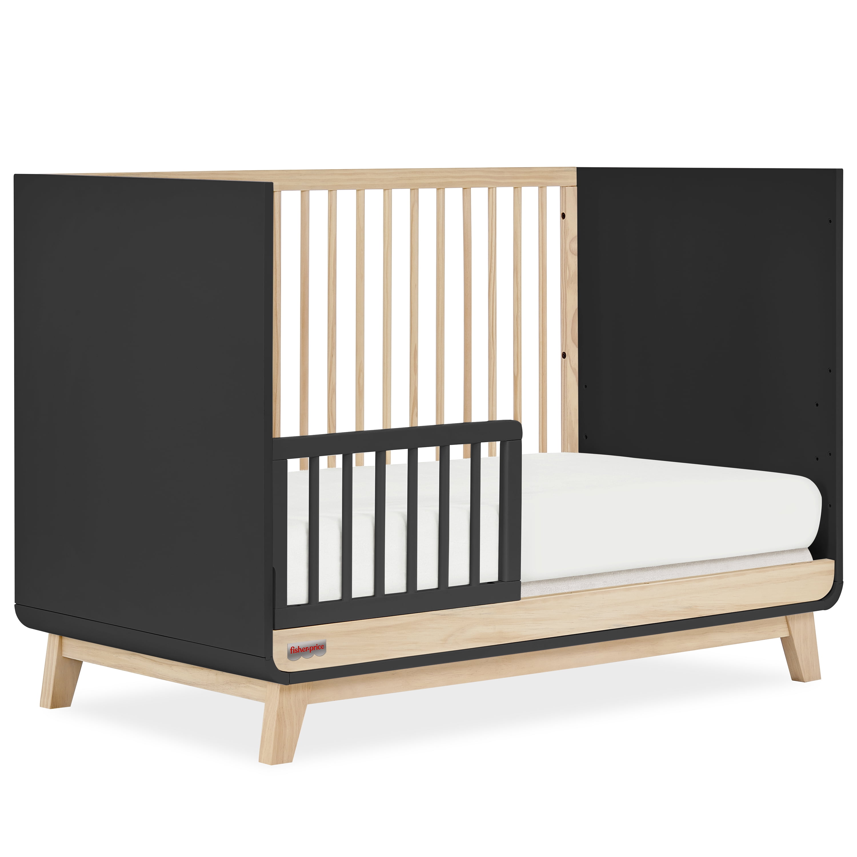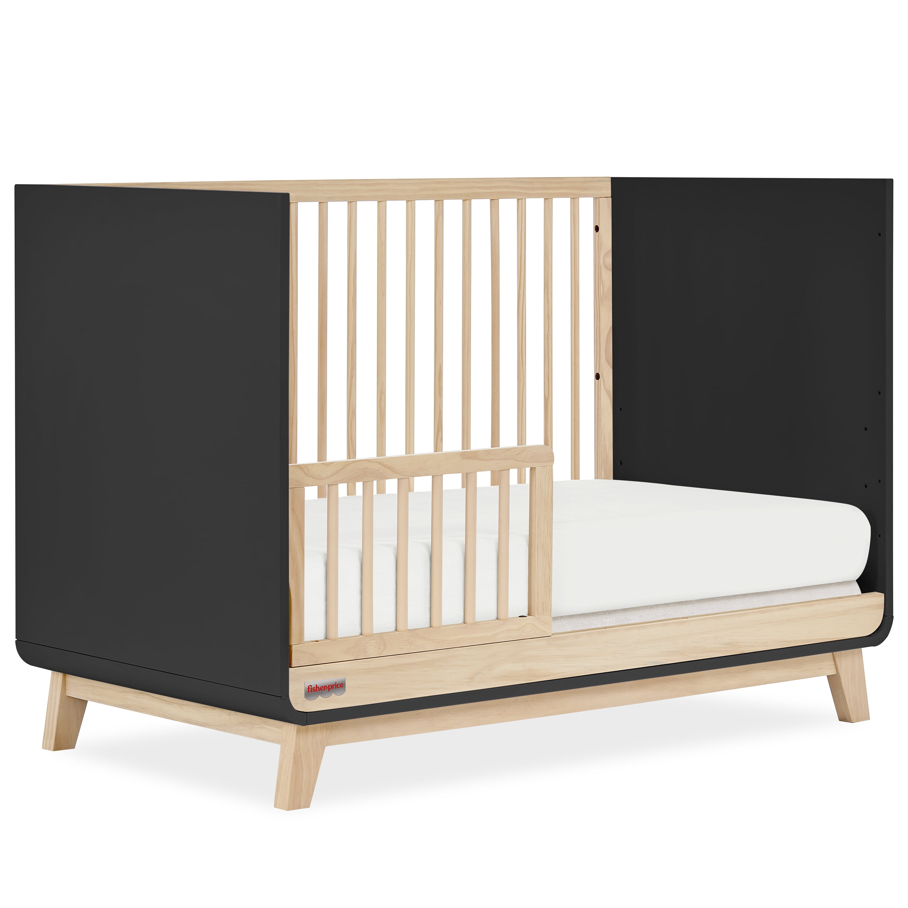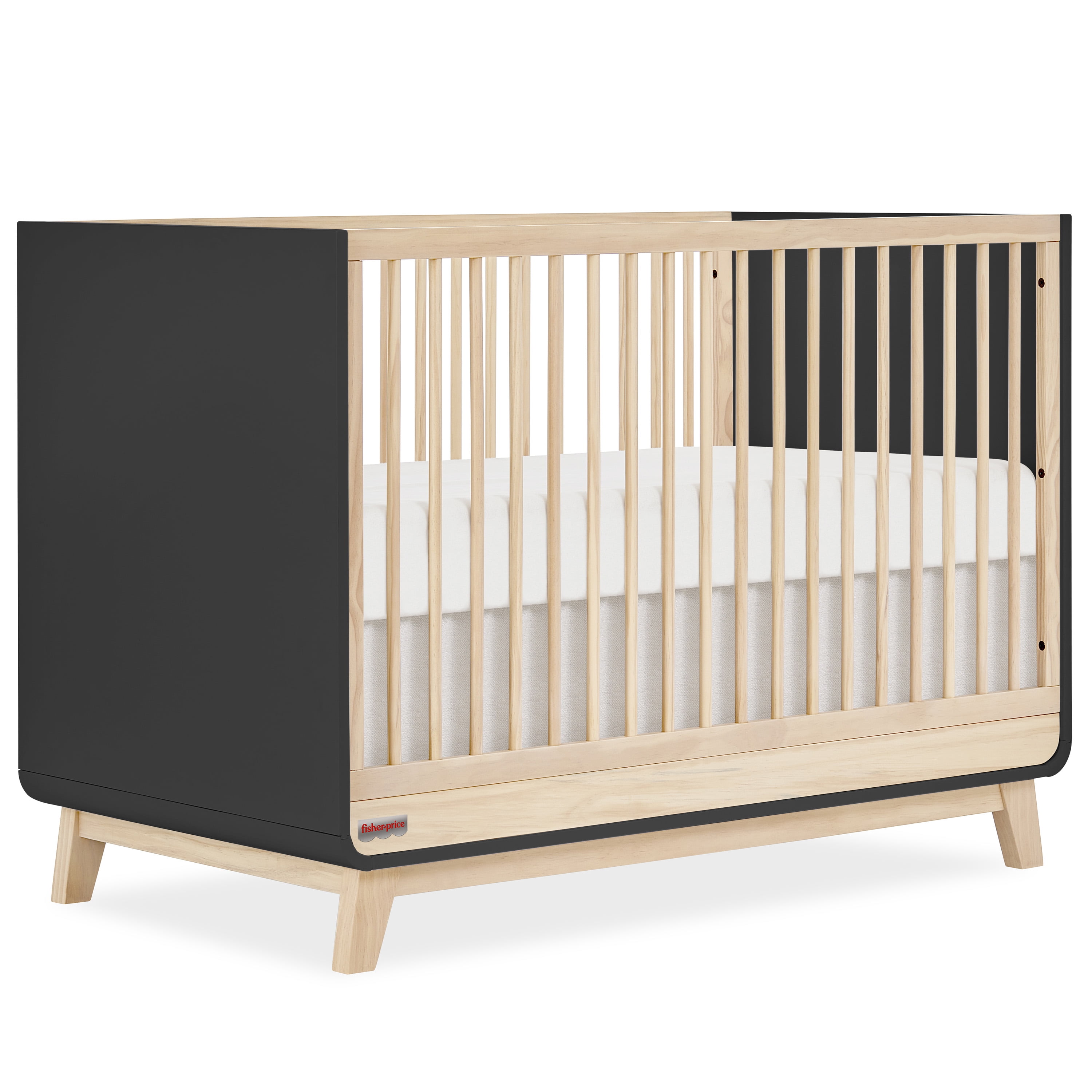 VERSATILE CRIB: Designed for versatility, it seamlessly transforms from a crib to a toddler bed and even a full-size bed as your little one grows (Guard rail included). SAFETY FIRST: The Fisher-Price™ Siesta 3-in-1 Convertible Crib ensures your child’s safety with JPMA certification and a commitment to non-toxic materials. PLAYFUL & CONVENIENT: Bring playfulness for your little one & convenience for you, as this crib is easy to assemble & super easy to maintain! DELIGHTFUL FINISHES: Available in 3 delightful finishes – Blush Pink Vintage Oak, Weathered Vintage Oak, and Matte Black Vintage Oak, the Fisher-Price Siesta 3-in-1 Convertible Crib is where siestas & adventures begin! PRODUCT SPECS: Product dimensions are 53.7” L x 30” W x 36” H, with a weight of 78 Lbs.