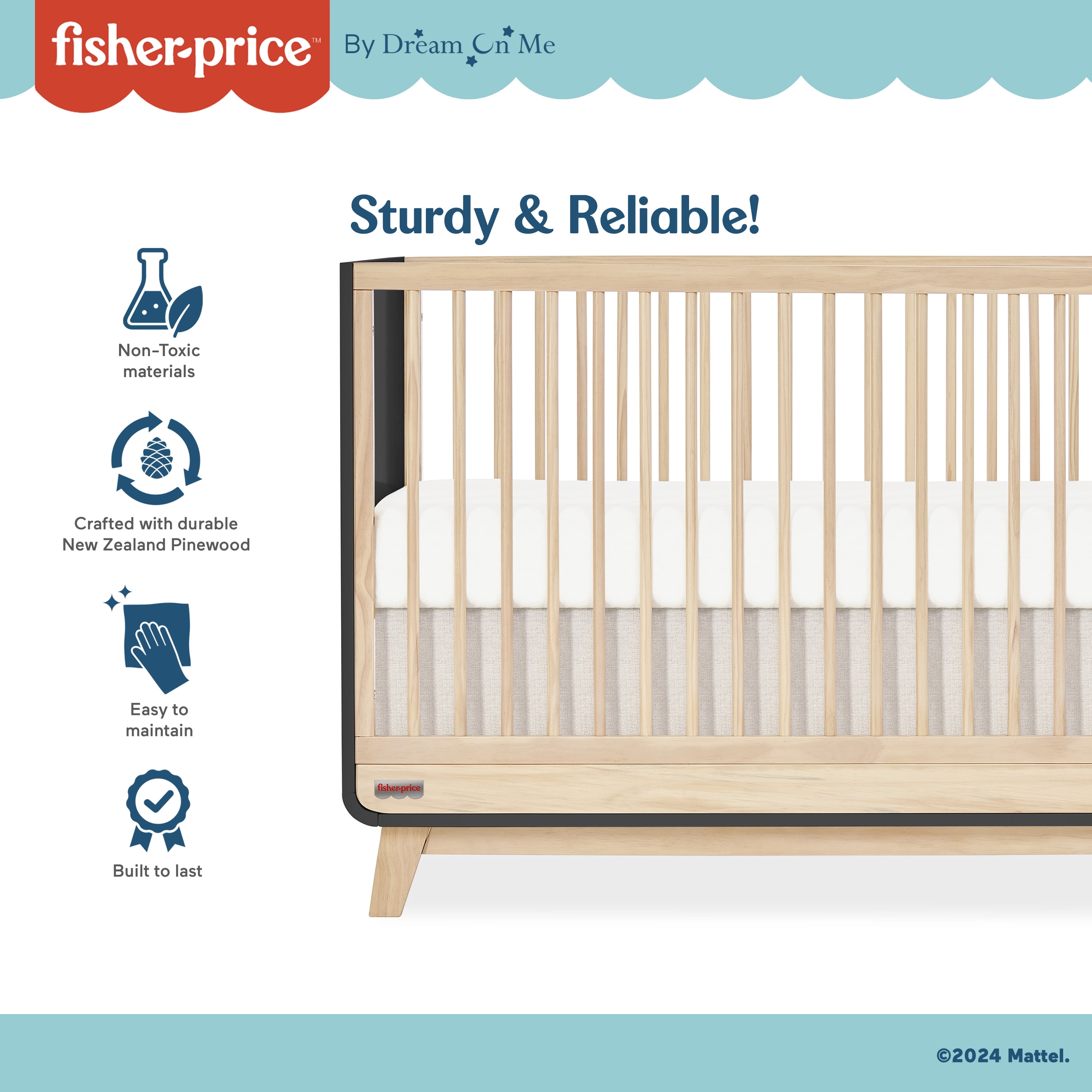 Fisher Price Siesta 3-in-1 Convertible Crib by Dream On Me, Matte Black