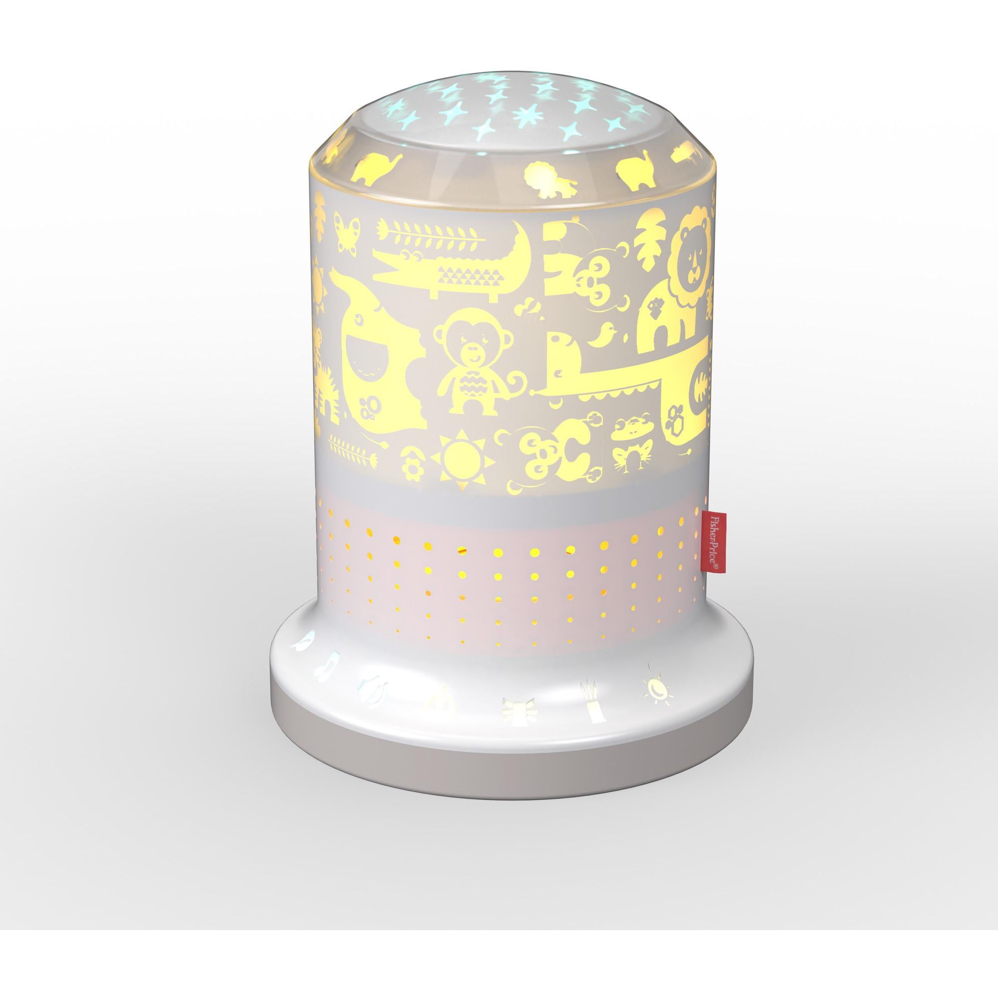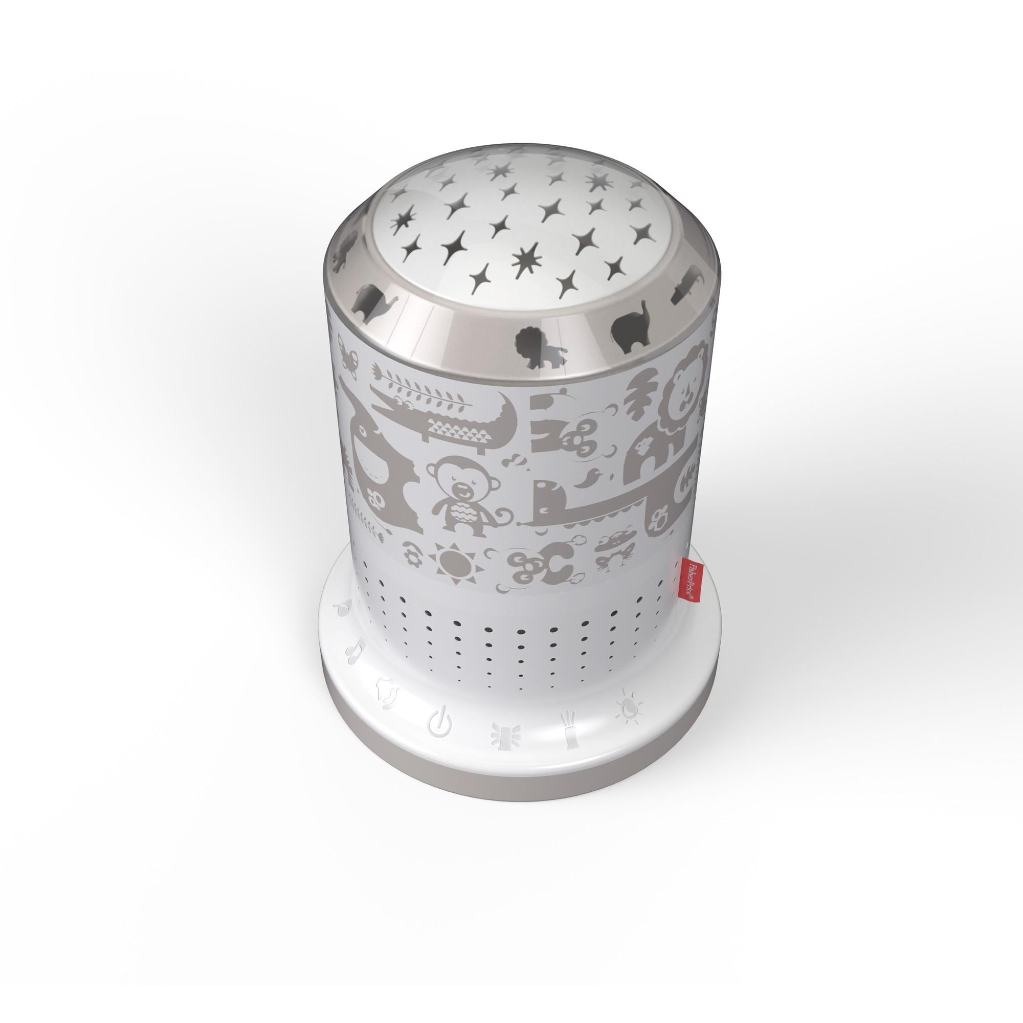Nursery sound machine that plugs in for all-night use (no batteries required!) 3 sound options, each with full volume control: Soothing music, nature sounds, white noise 3 lighting options (choose just one or any combination): Soft amber night light, Starlight projection (multiple color options), Soft amber animals projection Customize and control the lighting, sounds and timers from your smart device with the convenient Smart Connect app. Use the Sleep Stages tool to create a personalized bedtime routine. (Smart device not included.) Control panel on soother has back-lit buttons for better visibility during the night Auto-off timer