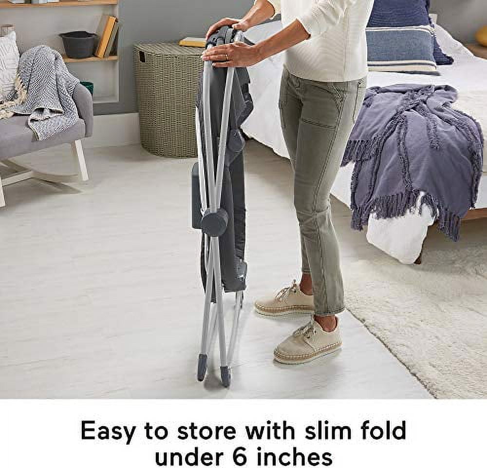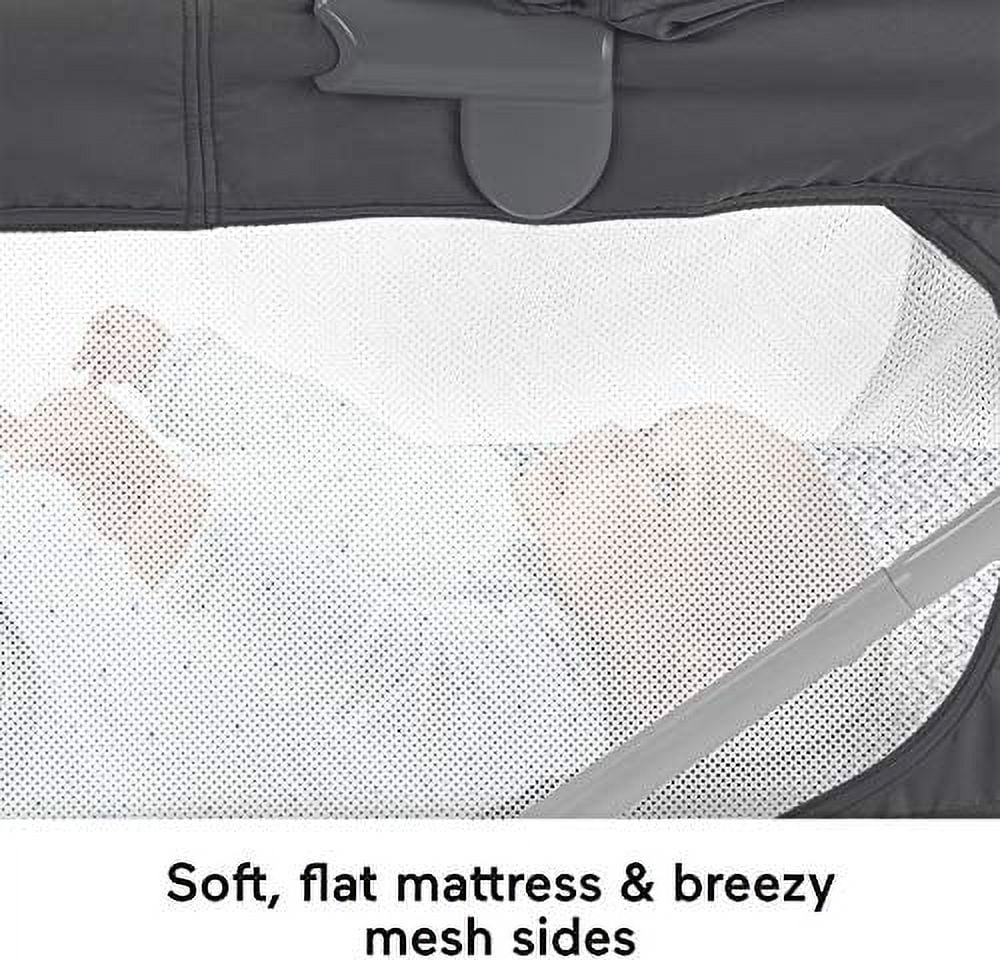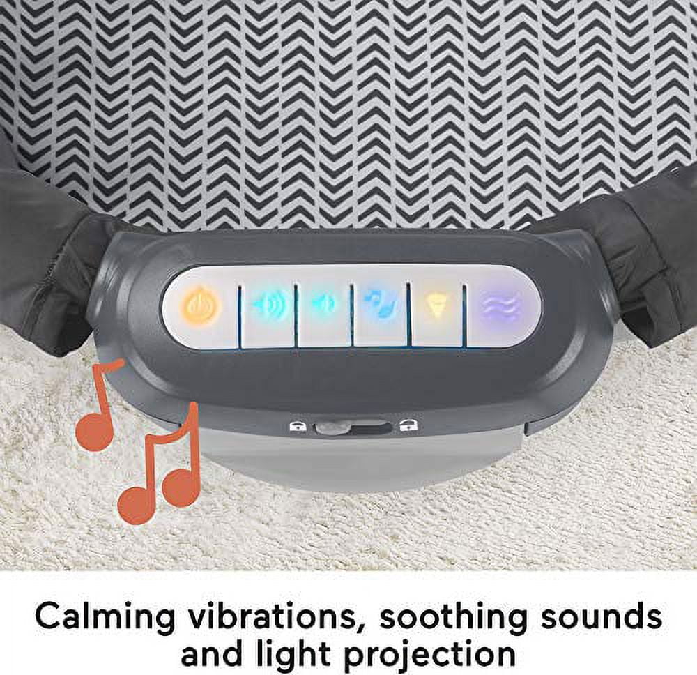 Portable, rocking bassinet with mesh sides and soothing starlight projection The bassinet has a lightweight frame that locks for stationary mode and a slim fold (under 6 inches) for travel or storage A retractable canopy for light projection, two linkable toys, calming vibrations, music, and sounds help soothe the baby to sleep Machine-washable sheet and wipeable mattress pad