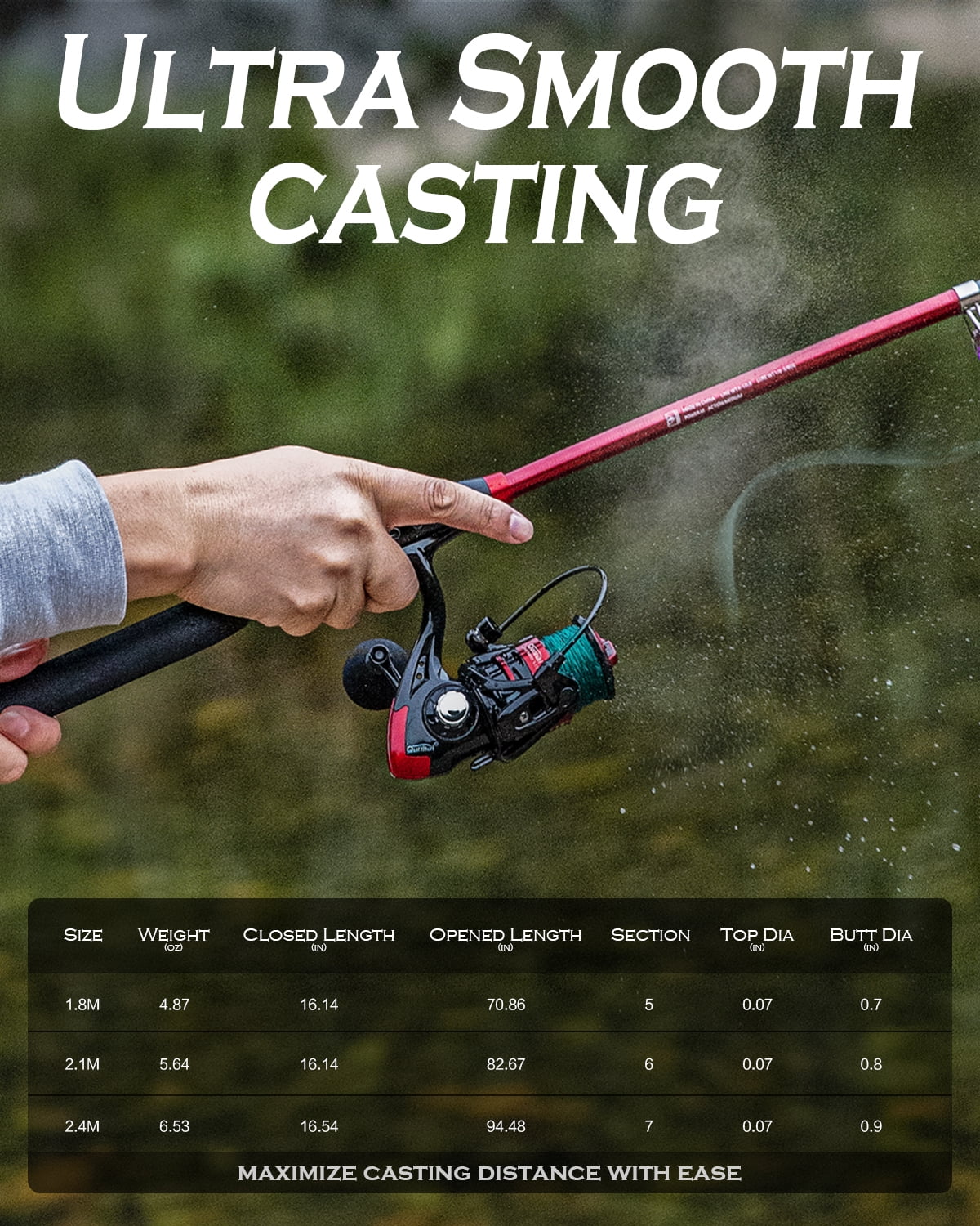 Unique Fishing Gift for Fishermenã Great surprise fishing gifts for Men, Dad, Husband and Kids on birthday, fathers days or Christmas. No matter he is new to fishing or an avid fisher, this superior fishing rod and reel combo meets all the desire on the water. It is a great way to get your family out and have some fun fishing anywhere like lakes and rivers ponds. Best Value Fishing Rod Kit.Highly recommended by Florida anglers, this collapsible fishing rod and reel combo includes 1 x Telescopic Fishing Rod, 1 x Aluminum Spinning Fishing Reel, 1 x Fishing Line, 1 x Carry Bag, Various Fishing Lure Baits and Fishing Hooks. Ghosthorn aims to deliver higher value fishing rod Kits, providing everything you need to get started! Complete for the Grab and Go Fishing Style.The telescopic fishing rod can be folded to only 16.3 inches for hiking and camping. It will add more fun for the trip by catching bass, crappie and trout in lakes and streams. It is also a great one to take on a plane for vacations near the ocean to catch sharks, and salmon. This Portable fishing pole kit would serve any camper, hiker, or casual fisherman well. Premium Telescopic Fishing Rod Made of high-density carbon fiber mixed with fiberglass, this high-end telescoping fishing pole is amazingly flexible, lightweight, and durable. The telescopic fishing rod also features EVA handle for optimal grip and comfort, and strong metal guide rings for fighting big fish. Super Smooth Spinning ReelYou will love this powerful Ghosthorn fishing reel, as the max drag is 34.3 Lbs with gear ratio 5:2:1. The 12+1 stainless steel ball-bearings ensures its ultra-smooth performance for travel Saltwater Freshwater bass salmon trout fishing. Stand Behind Our CustomerGhosthorn medium power telescopic fishing rod is ideal for a wide range of different types of fishing, which is also a perfect gift for fathers, sons, husbands, fiancés and boyfriends. Ghosthorn will provide a 1-year warranty to replace any defective fishing pole in our product, 30 days no-hassle refund/return. Unique Fishing Gift for Fishermen|Best Value Fishing Rod Kit|Complete for the Grab and Go Fishing Style|Premium Telescopic Fishing Rod|Super Smooth Spinning Reel|Stand Behind Our Customer