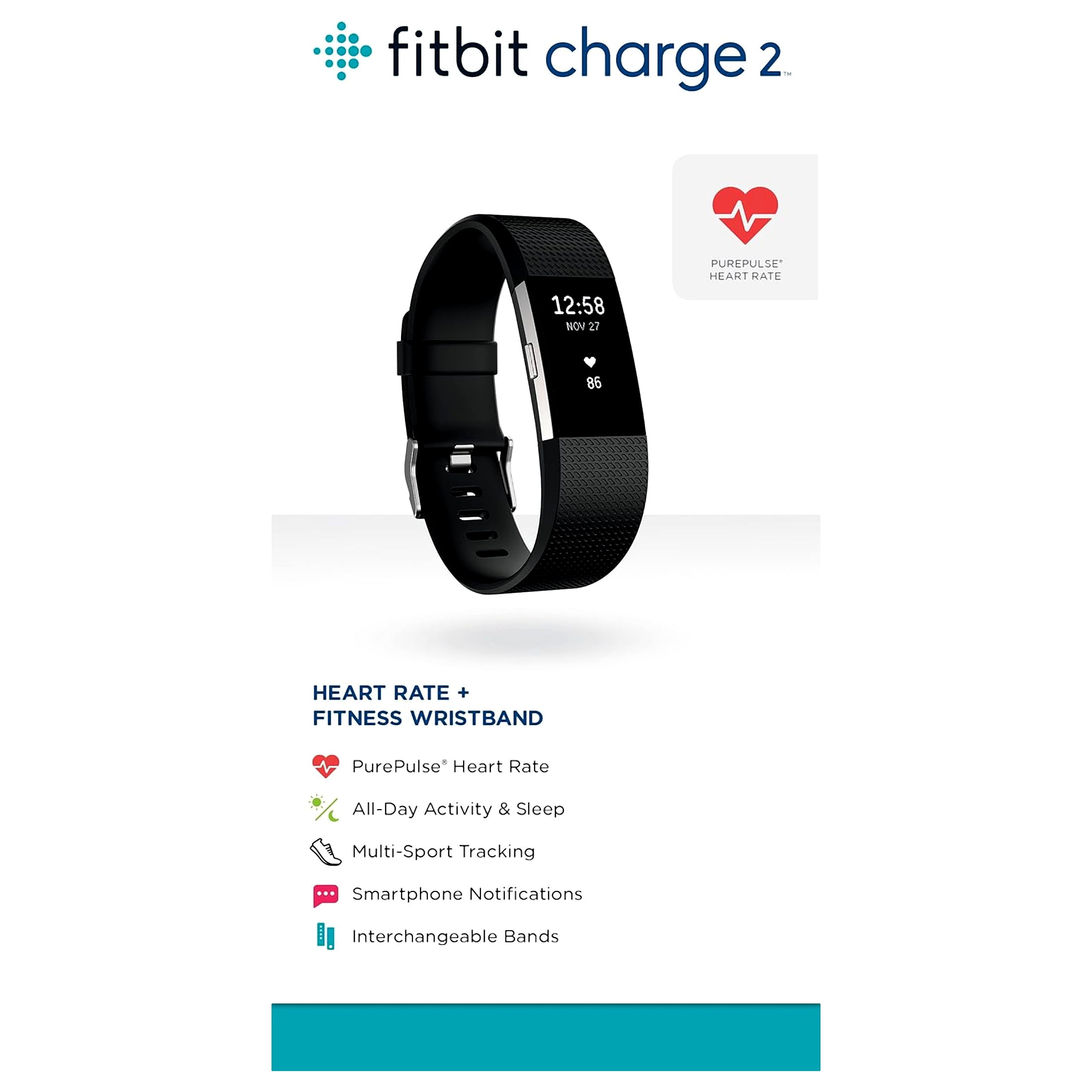 Track heart rate continuously on your wrist to maximize workouts, better track calorie burn and get a clearer picture of your health – all without an uncomfortable chest strap. Track steps, distance, calories burned, floors climbed, active minutes & hourly activity with long-lasting battery life. To help you stay active throughout the day, Charge 2 sends reminders to move that encourage you to take 250 steps every hour. Charge 2 automatically tracks how long and how well you sleep to help you work toward a better routine. Product Type: Activity tracker Integrated Components: Heart rate sensor Supported Host Device OS: iOS, Android, Windows Phone Tracking Data: Distance, time, calories burned, activity, sleep activity, heart rate, steps taken Color: Silver Features: Calendar notification, SMS notification, tap control, PurePulse heart rate technology, changeable band, SmartTrack, inactivity alert Type: OLED – monochrome Wireless Interface: