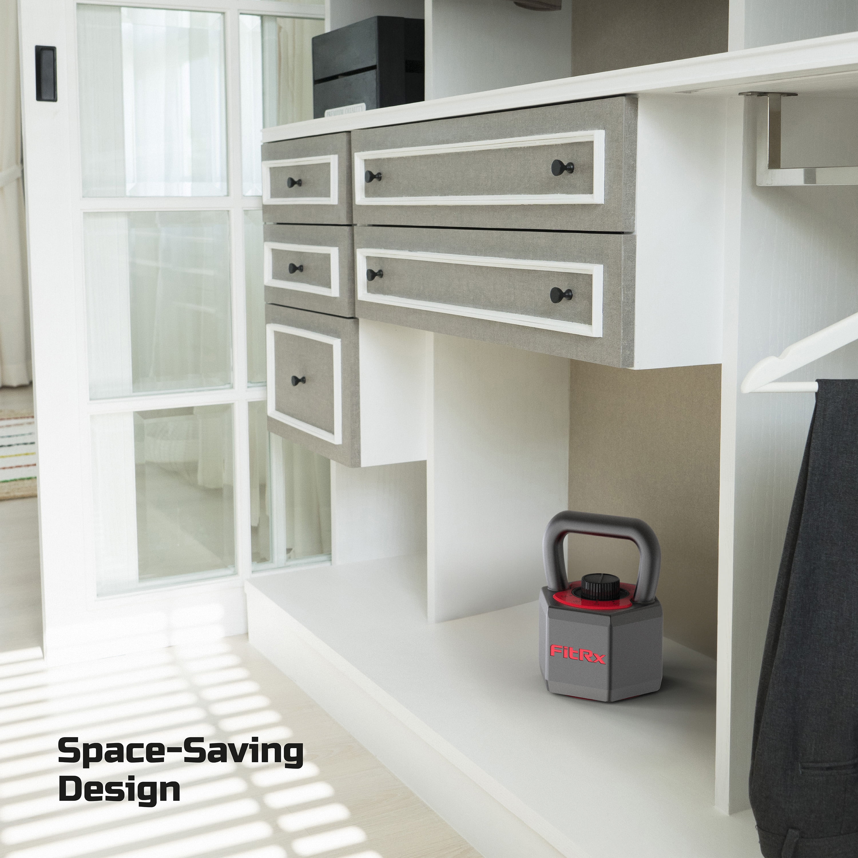 FitRx 25 lbs SmartStack Wide handle Adjustable Kettlebell, 40 lbs, Black Adjustable kettlebell with weight options from 25 to 40 lbs Weight selection dial allows for easy adjustments while keeping plates secure Space-saving design offers versatility and customization without extra bulk Ideal for enhancing your fitness routine and home gym setup Four weight configurations: 25, 30, 35, and 40 lbs