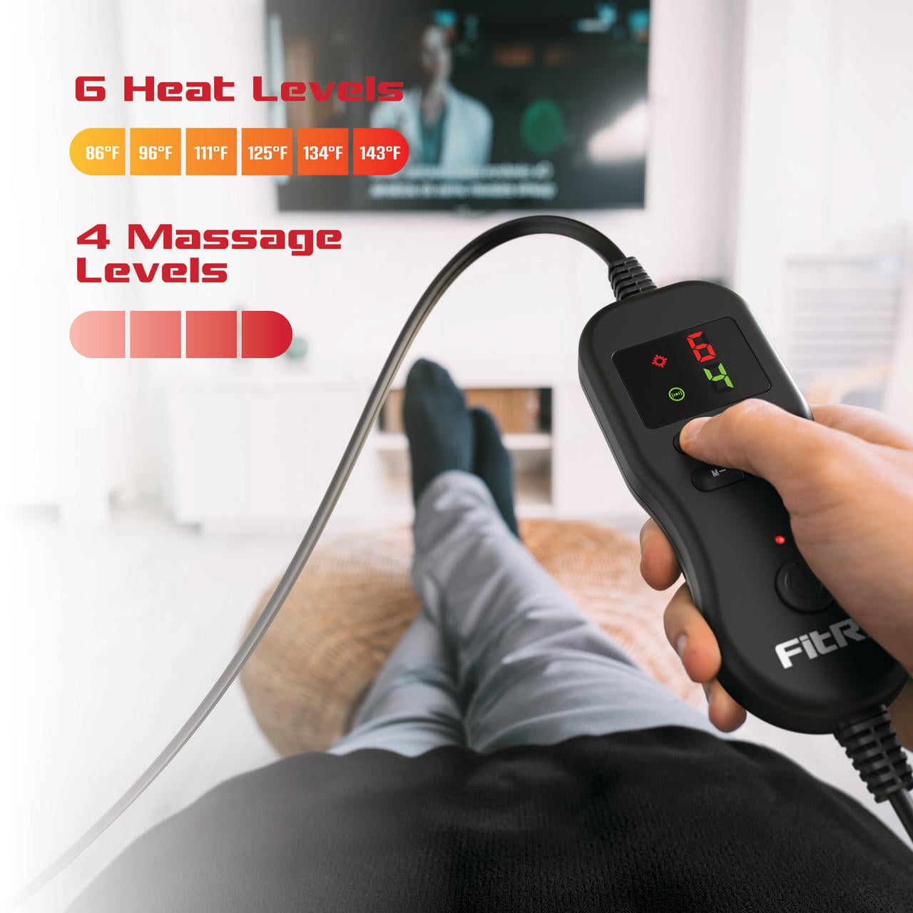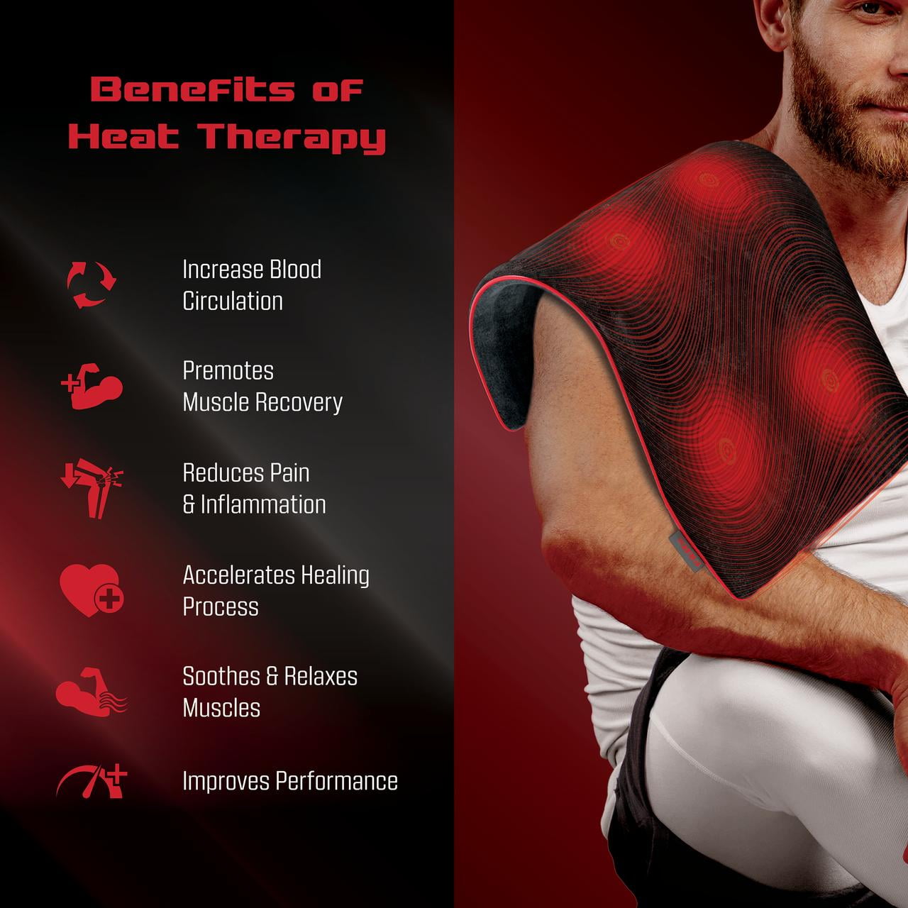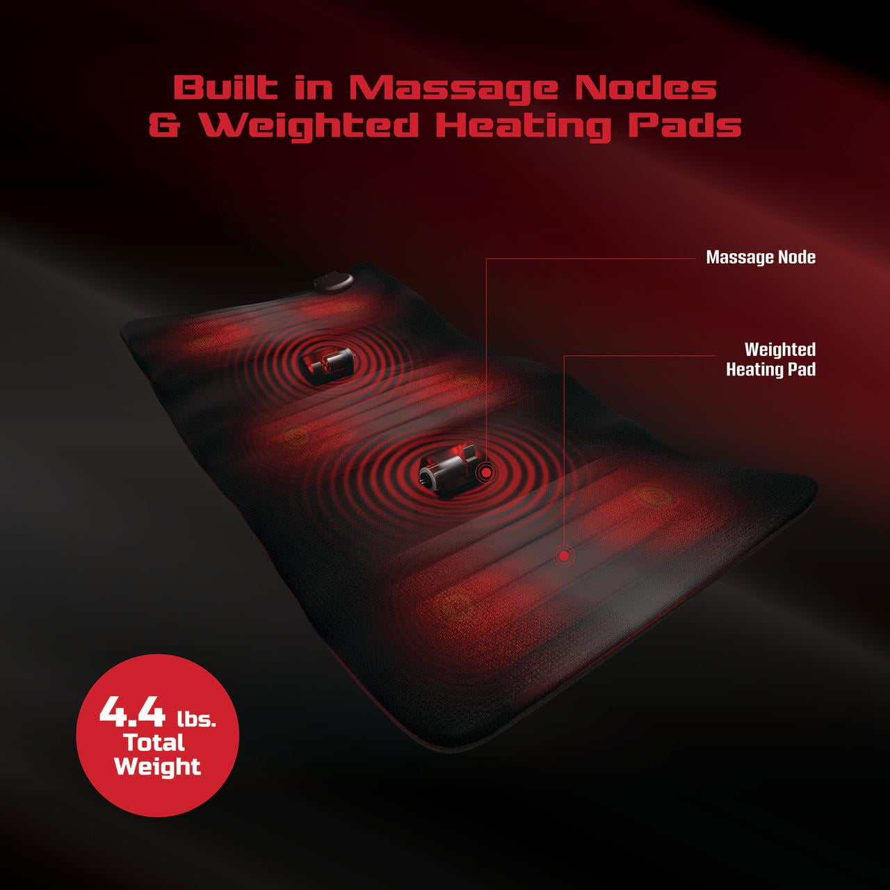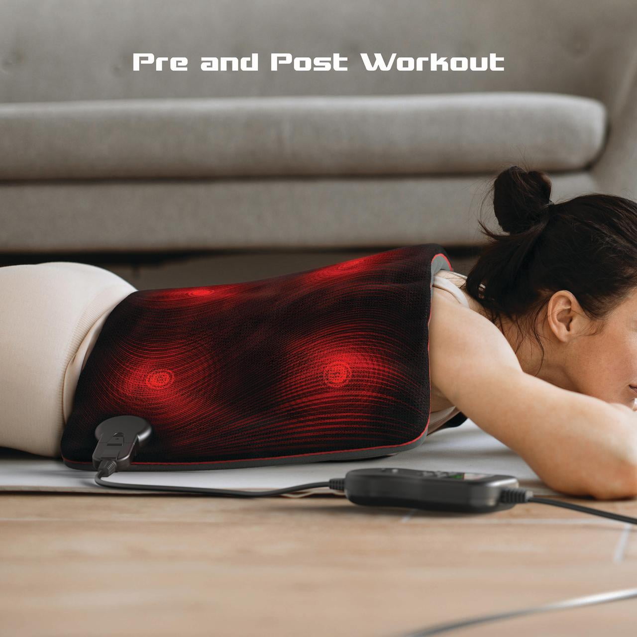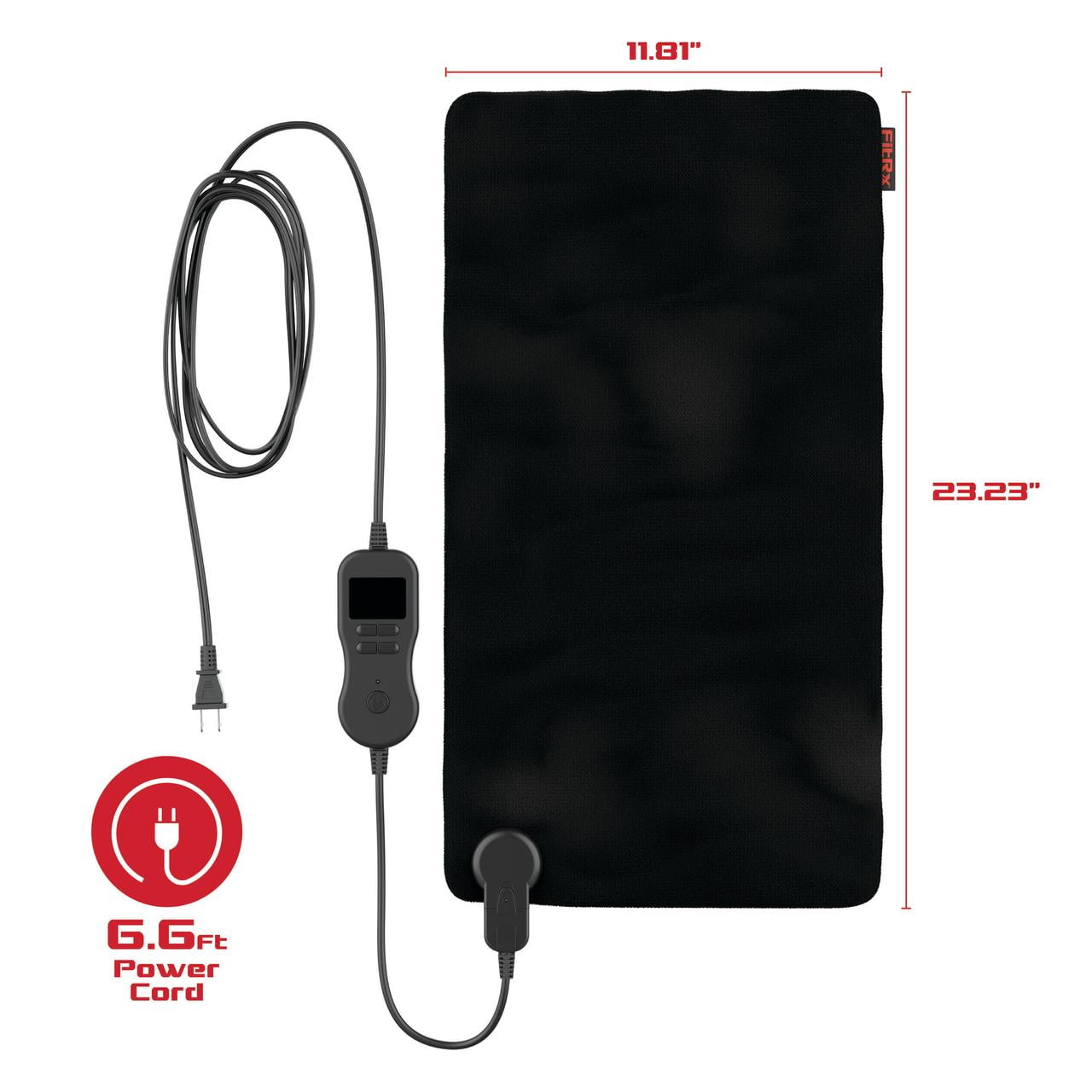 FitRx Recovery Heat Plus Weighted Heating Pad, 4lbs. Weighted Electric Heating Pad for Back Pain Relief, 12 x 24in. 6 heat levels with adjustable temperatures: 86°F, 96.8°F, 111.2°F, 125.6°F, 134.6°F, 143.3°F 4lbs total weight helps pad conform to your body and offer soothing pressure Multi-functional control is easy to use 2-hour auto-shutoff 9.3ft power cord Specs: Input – AC 120/~60Hz; Power – 90W; Pad Dimensions – 12 x 24in