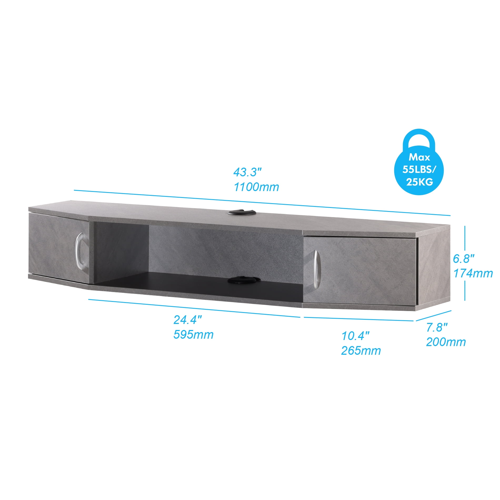 【MUTIL STORAGE & HIDDEN CABINET】: The storage space with wall-mounted TV shelves is perfect for holding TV components, game accessories, books and decorations. The hidden doors of the floating entertainment center on both sides can cleverly protect privacy, while the center door can place game consoles, stereo speakers, DVD players and CDs to make reasonable use of the space. 【VINTAGE DESIGN】: This wall mounted shelf is ideal for bedrooms, living rooms, parlors or kitchens as a av shelf or desk hutch. Dimensions is 43.3*11.8*6.85″(LxWxH). 【WIRE MANAGEMENT & SPACE SAVING】: Cable Holes for hiding messy cables, keeping your stuff neatly organized. Wall mount design doesn’t take much space and frees up valuable floor space.