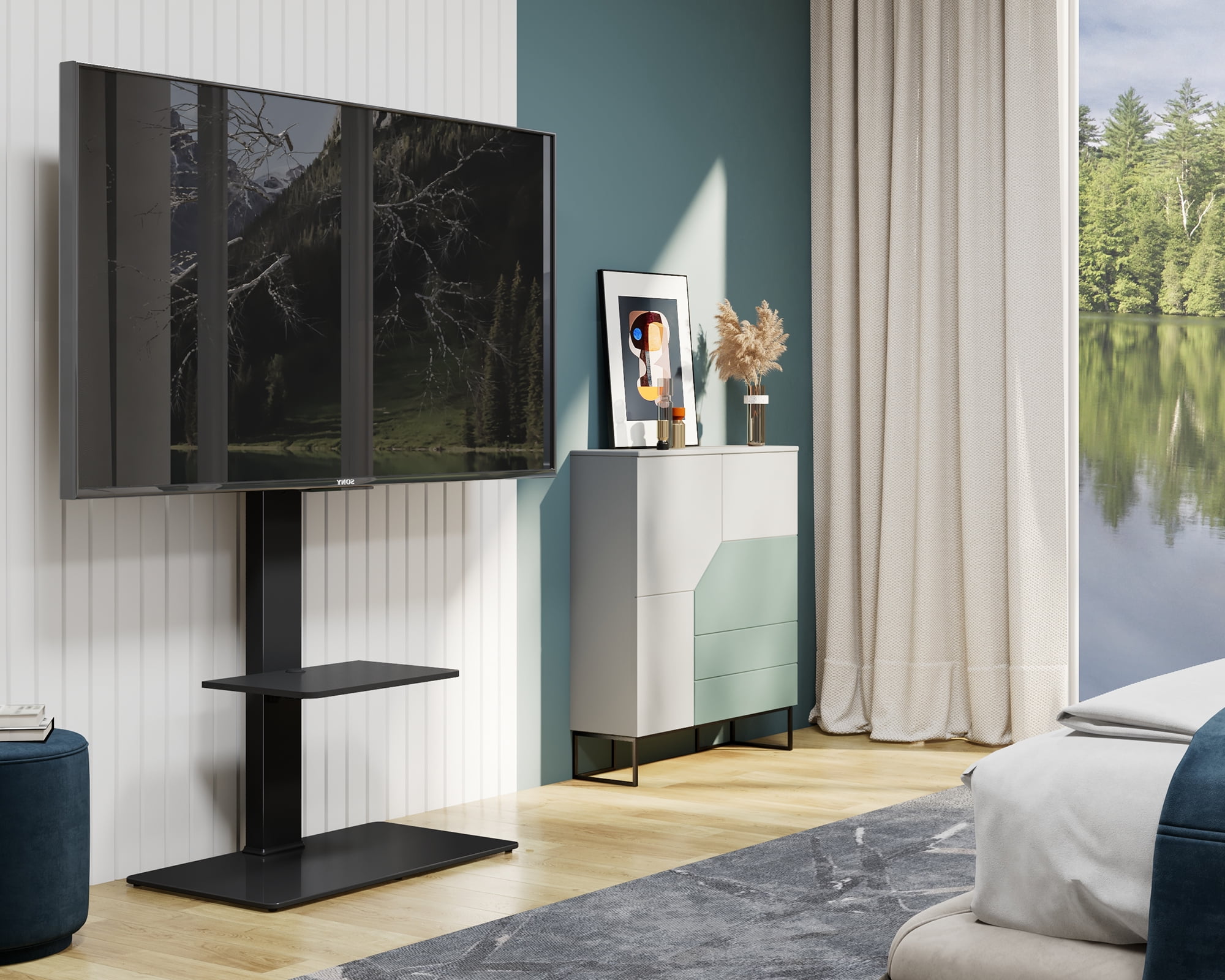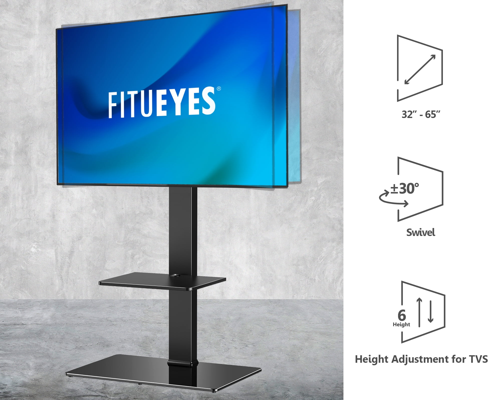 FITUEYES Floor TV Stand Mount with Swivel Bracket for TVs up to 65″, Black
