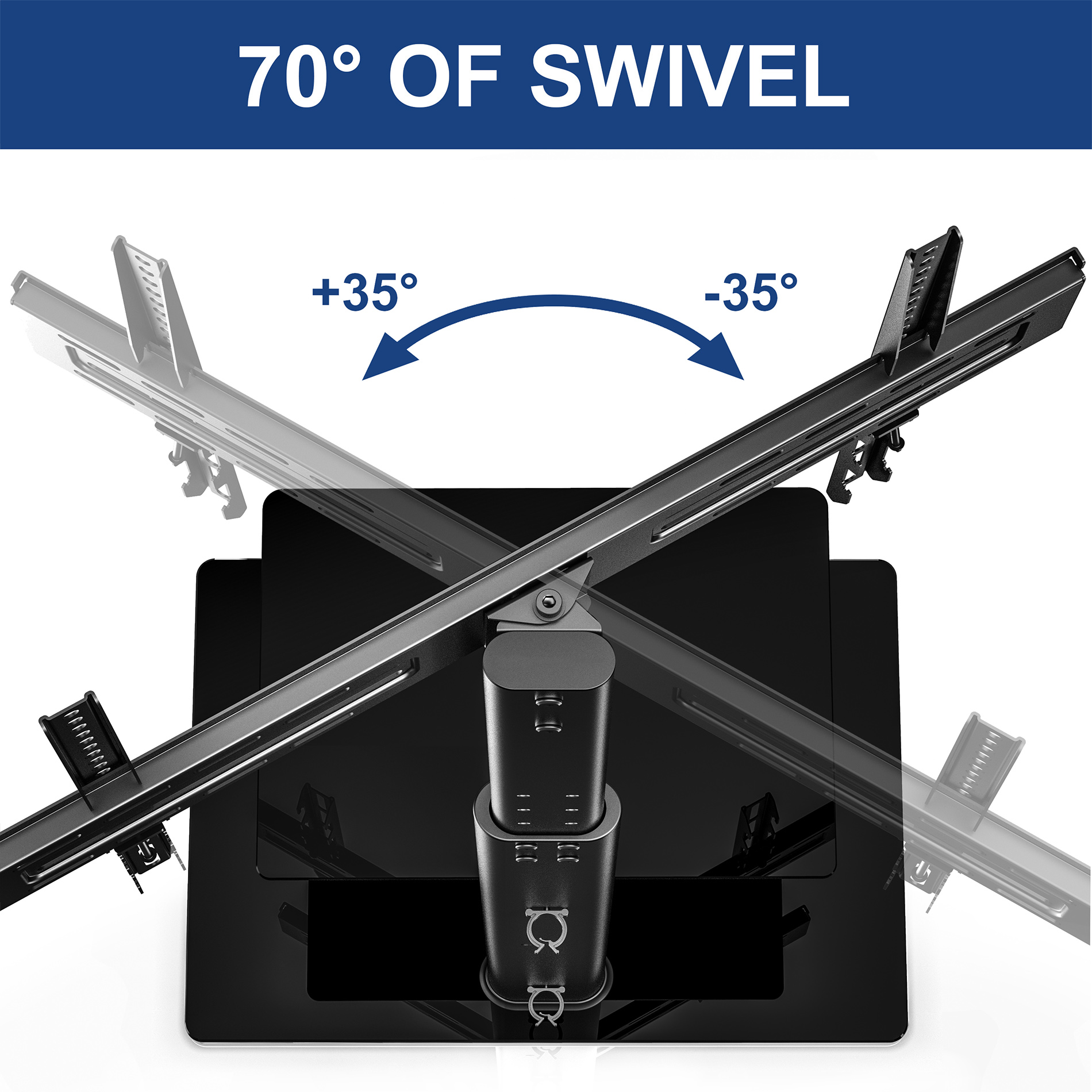 Sleek Design! – This TV mount with Shelves creates a modern look for your audio video equipment. Smart Design! – This TV mount with two shelves adds a unique ability to swivel where others cannot. Cable management is designed to organize all your wires. The mount will fit most tvs from 32″ 37″ 39″ 40″ 42″ 50″ 55″ 60″ and 65″. Please make sure your TV’s VESA bolt pattern falls between these two sizes: 100(w)mm x 100(h)mm up to 600(w)mm x 400(h)mm. Rack can be rotated, height adjustable, fit most TVs from 32″ to 60″ 65″, and up to load 66 LBS