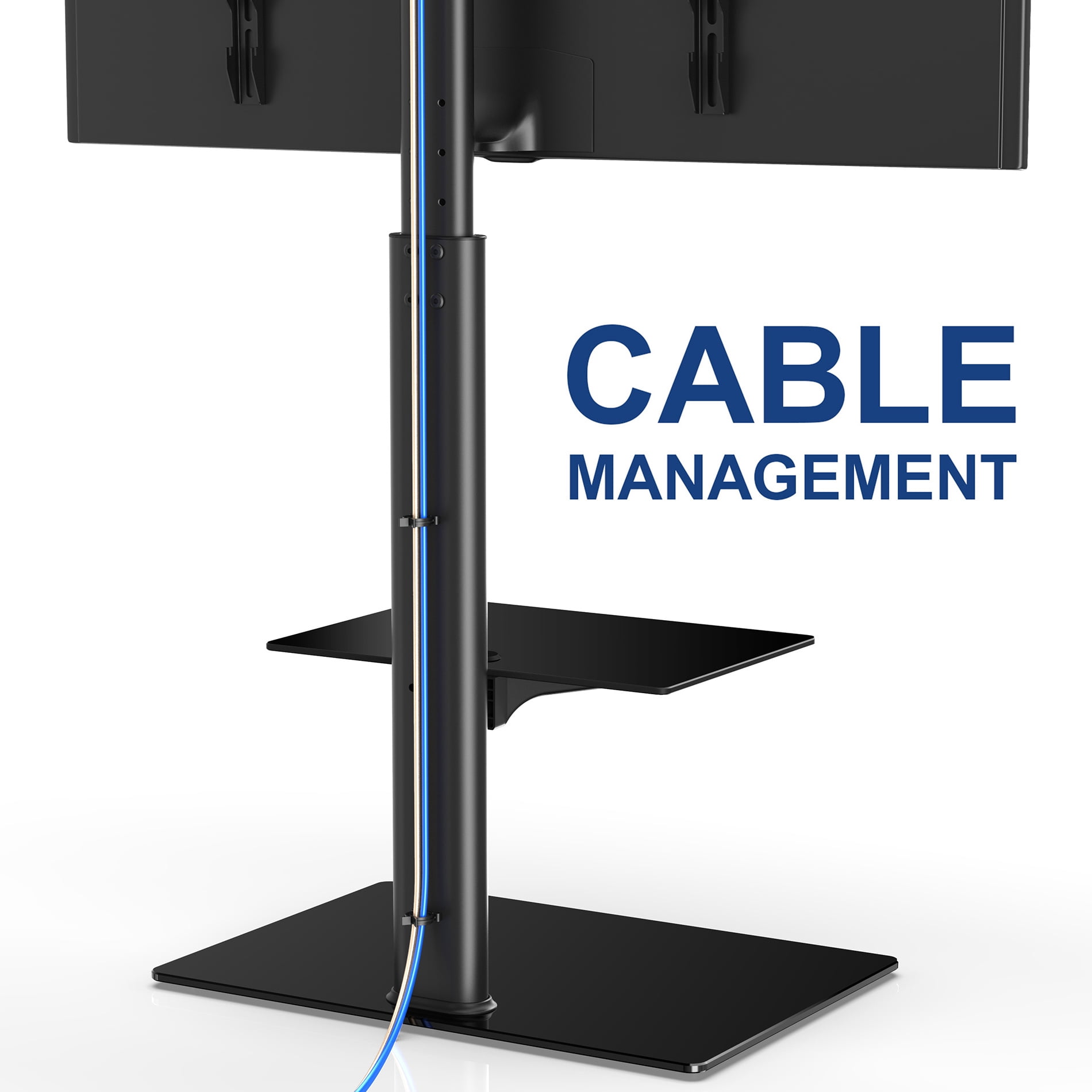 Fits for TVs 32″-65″- Fitueyes universal TV stand fits for most 32-65 inch TVs like Panasonic Samsung Sony TCl LG Sharp screens flat & curved with a max weight of 66 lbs. Please make sure your TV’s VESA mounting holes fall between 100×100 to 600×400 mm. Modern TV Stand with Tempered Glass Base- Sturdy pole and black tempered glass base not only bring you a sense of sleek design, but also make it safe and durable for your kids and pets playing. Height Adjustment & ±35° Swivel Mount- Features Adjustable Height and the TV mount swivels 35°(max angle) left or right. Fitueyes floor TV stand always ensures you a comfortable viewing angle. Space Saver & Cable Management – Equipped with One black shelf, this corner TV stand open up your space in bedroom living room, at a rental, in the department, at a meeting etc. And you can easily keep wires and cables neat and organized at the back of the pole. Easy Assembly with Installation Manual- There’s no need to drill your beautiful wall, Fitueyes universal swivel TV stand provide necessary tools and hardware to get your TV mounted, instructions are pretty straight forward.