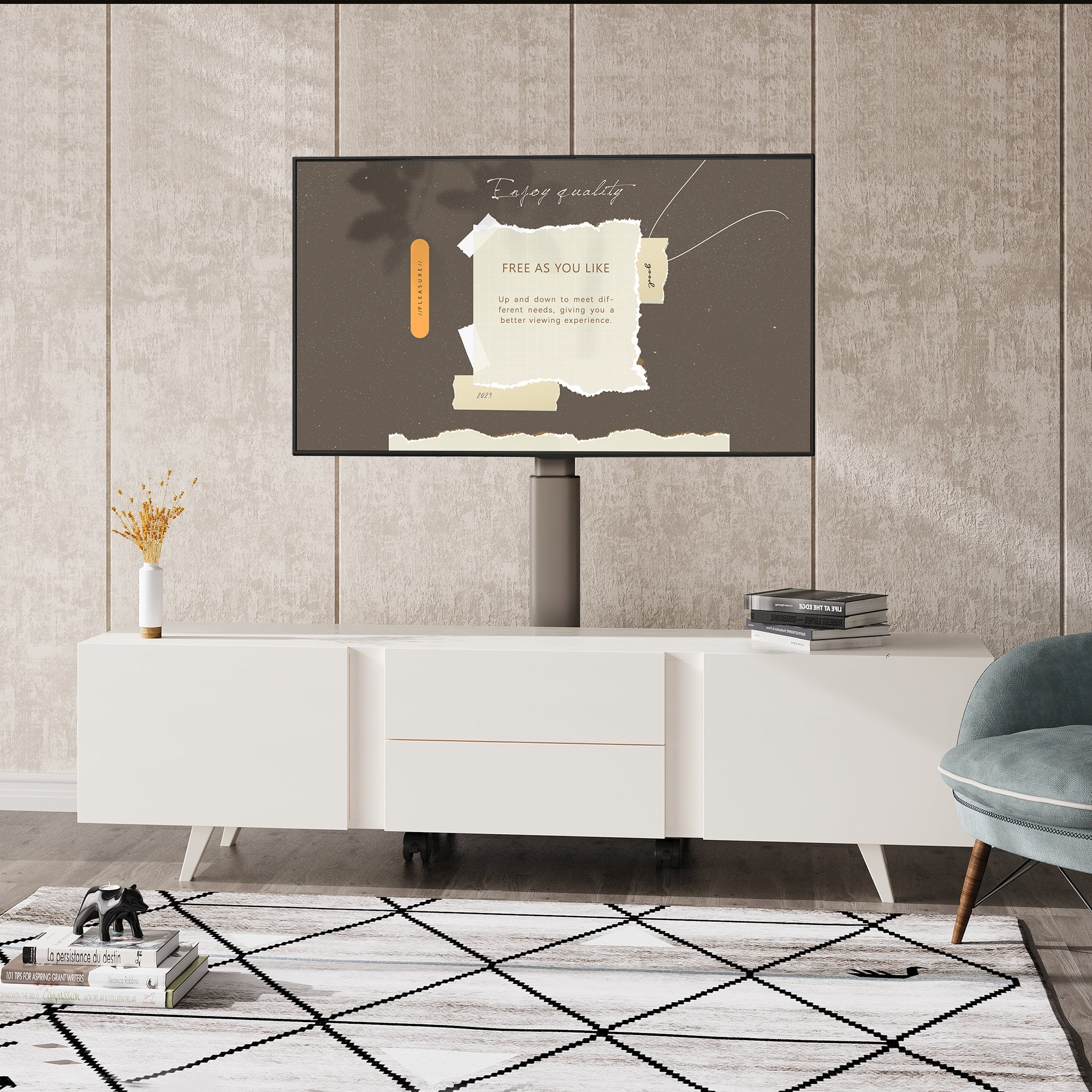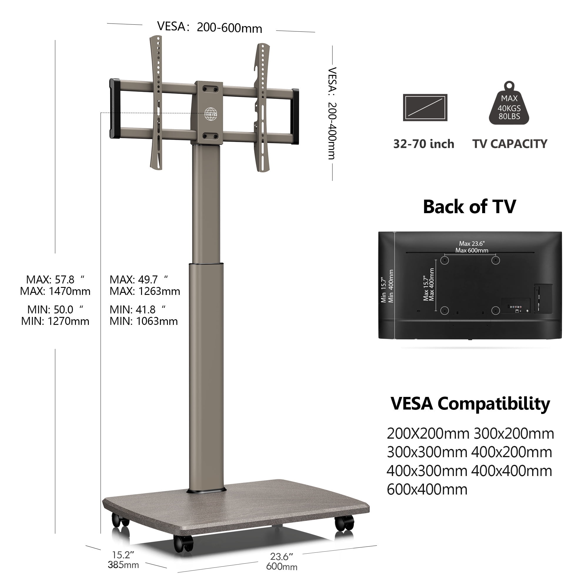 FITUEYES Rolling TV Floor Stand for 32 – 70 Inch TVs,Morandi gray