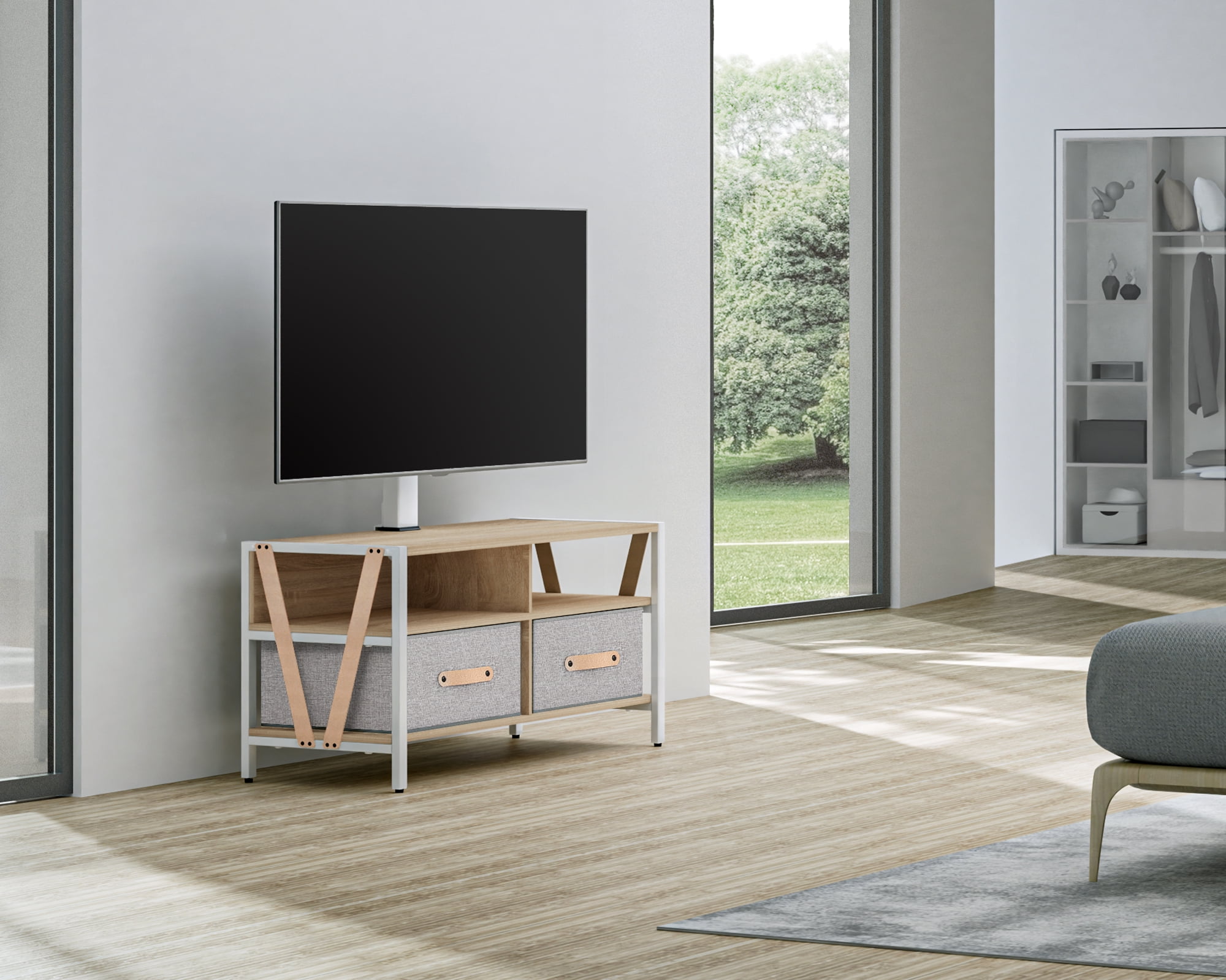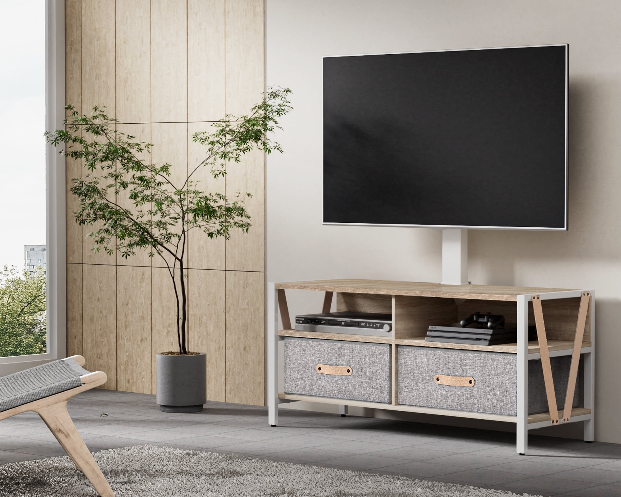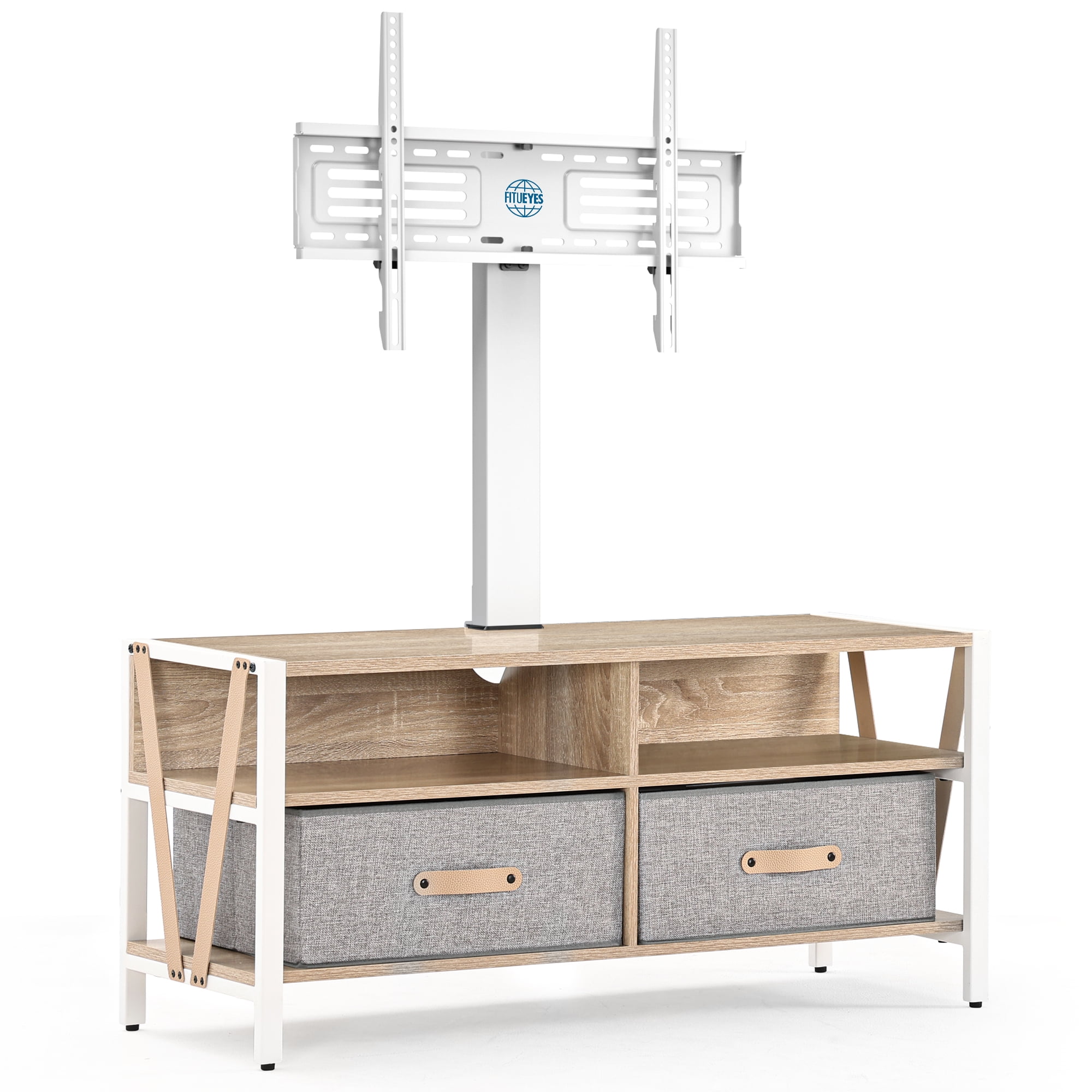 FITUEYES TV Stand with Swivel Mount for TVs up to 75″, White