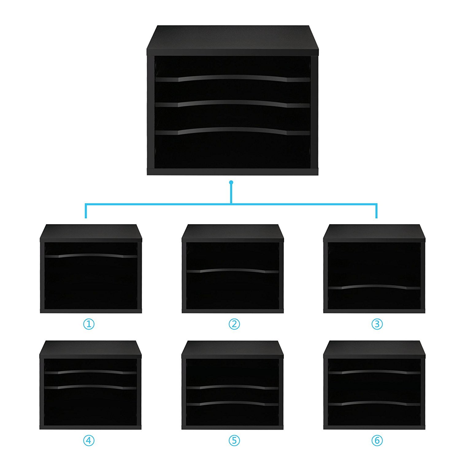 Multi-function: Accommodates monitors, printers, and fax machines.This item is multi-function, it can be used to storge documents. Adjustable: A variety of free space combination (up and down adjustable) Universal Use: This product can not only hold the documents, you can also place some other items to reduce the office space and home mess, using the least amount of space to accommodate the most items. It is easy to find a variety of documents; it is the perfect choice for your office and home. Easy Assemble: The wrench inside the gift box, a single man can complete the installation in ten minutes, making your life easier.