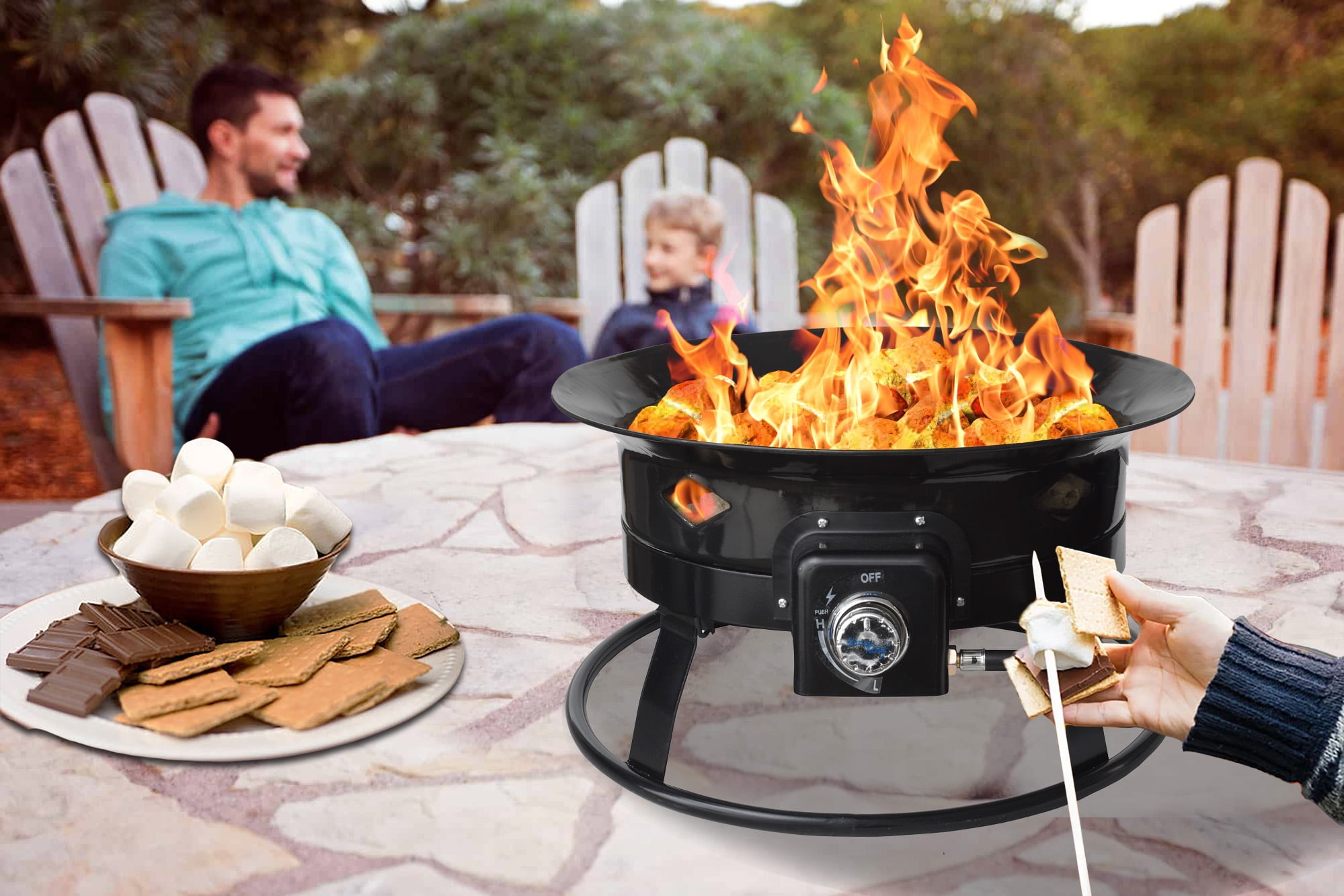 Flame King 19-inch Portable Smokeless Propane Fire Pit with Self-Igniter, 58,000 BTU