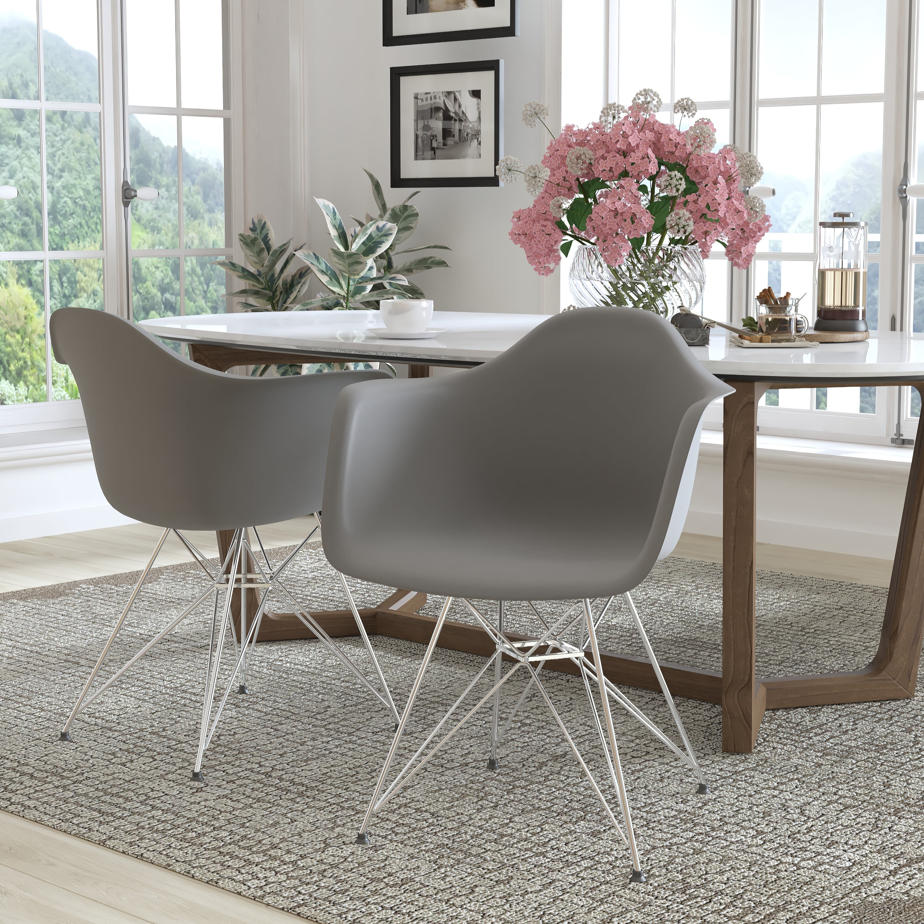 Flash Furniture 2 Pack Alonza Series Moss Gray Plastic Chair with Chrome Base Set of 2 Accent Side Chairs Moss Gray Plastic Finish Curved Arms Polypropylene Molded Structure Waterfall Seat reduces pressure on your legs Chrome Base with Bracing Adjustable Floor Glides Designed for Commercial Use PRODUCT MEASUREMENTS: Overall Size: 24.5″W x 25″D x 31.25″H; Seat Size: 15″W x 17″D x 18″H; Back Size: 16″W x 15″H; Arm Size: 26.5″H from floor; 8″H from seat