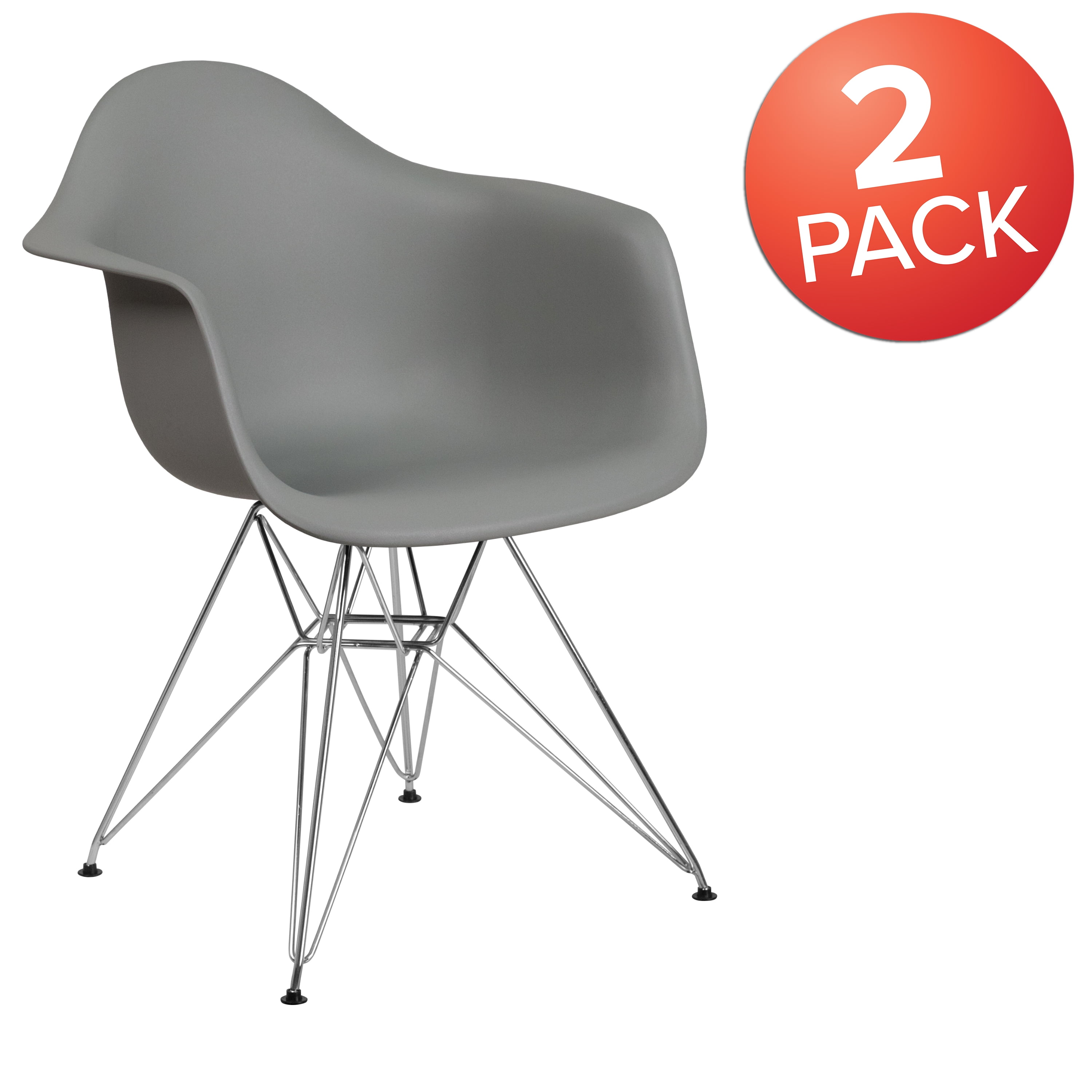 Flash Furniture 2 Pack Alonza Series Moss Gray Plastic Chair with Chrome Base