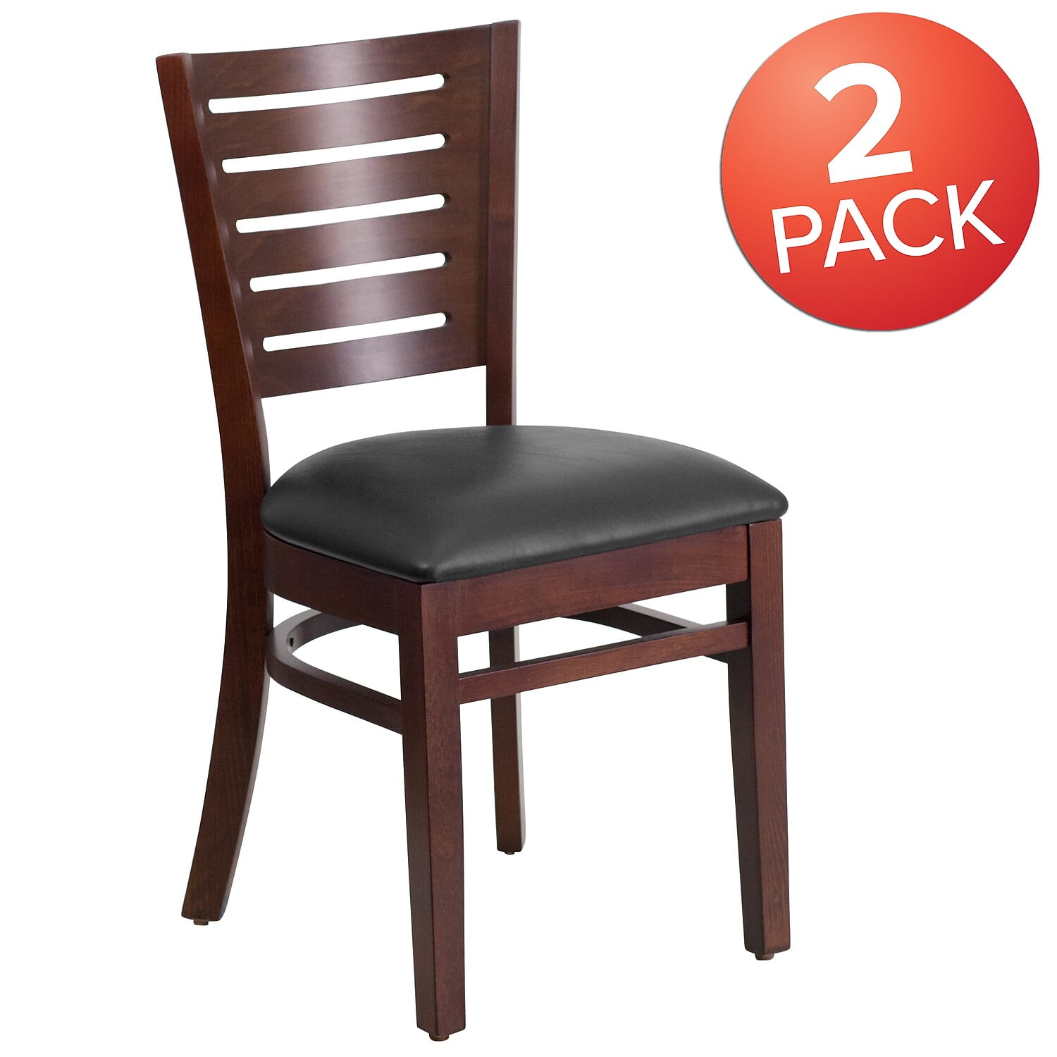 Flash Furniture 2 Pack Darby Series Slat Back Walnut Wood Restaurant Chair – Black Vinyl Seat