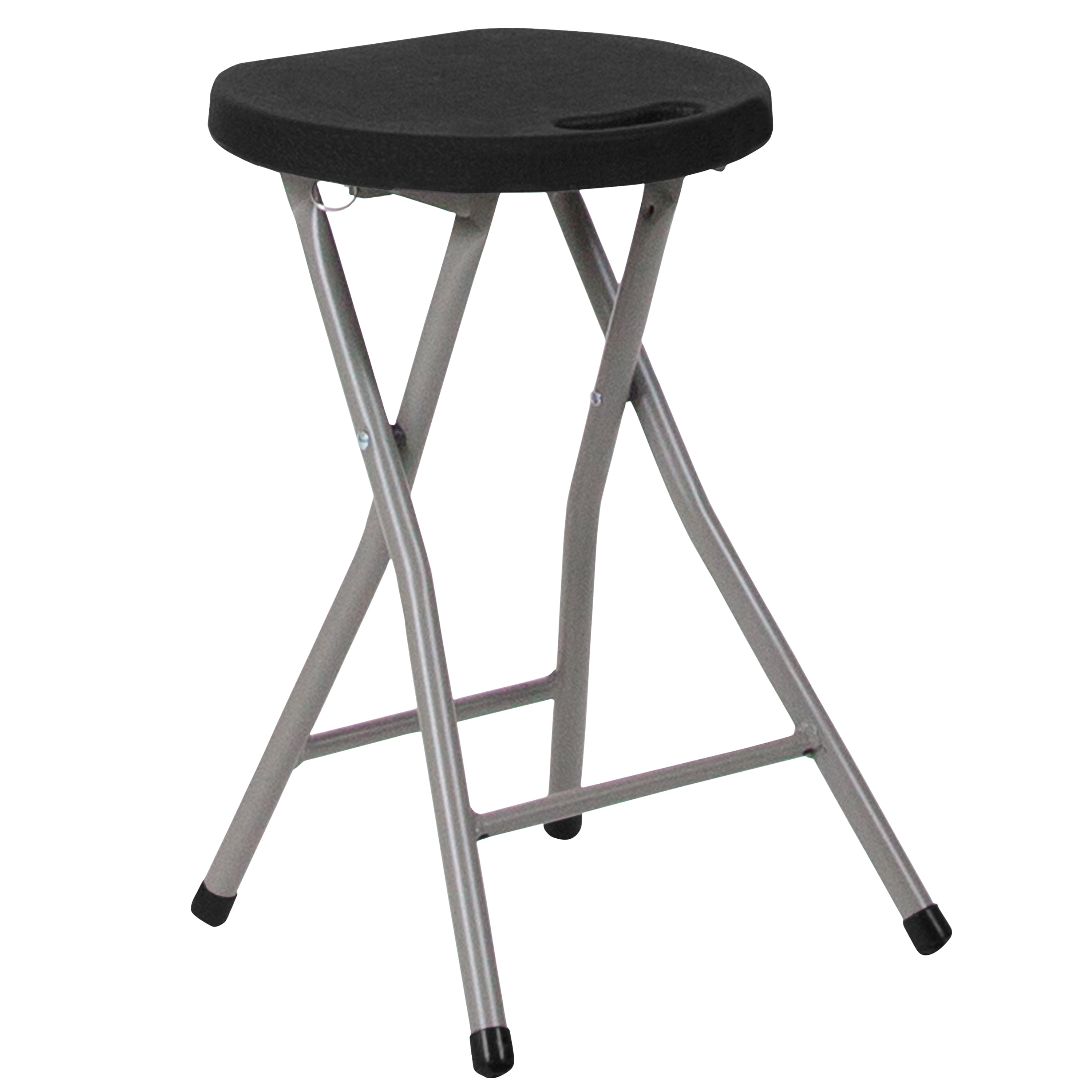 Flash Furniture 2 Pack Foldable Stool with Black Plastic Seat and Titanium Gray Frame