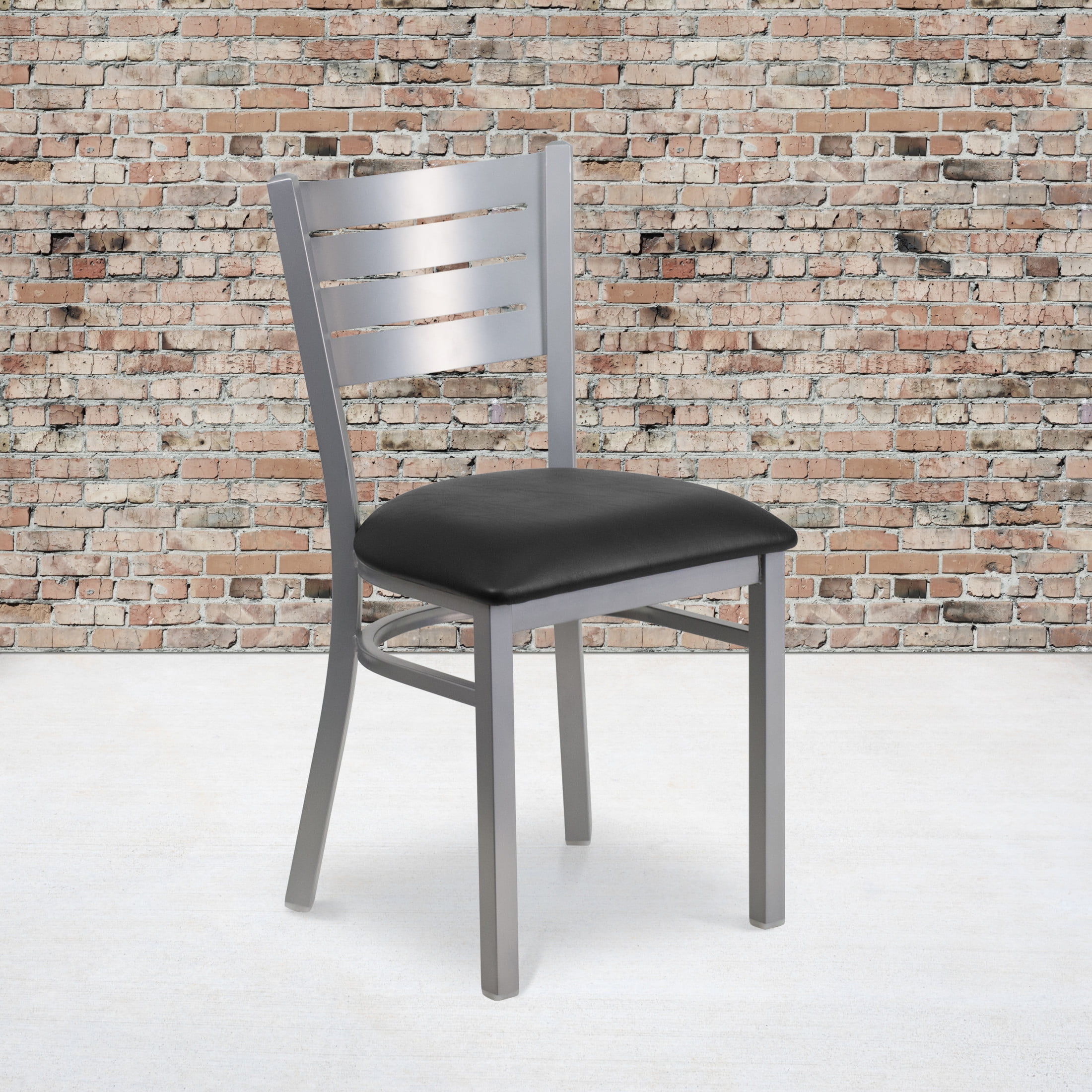 Flash Furniture 2 Pack HERCULES Series Silver Slat Back Metal Restaurant Chair – Black Vinyl Seat
