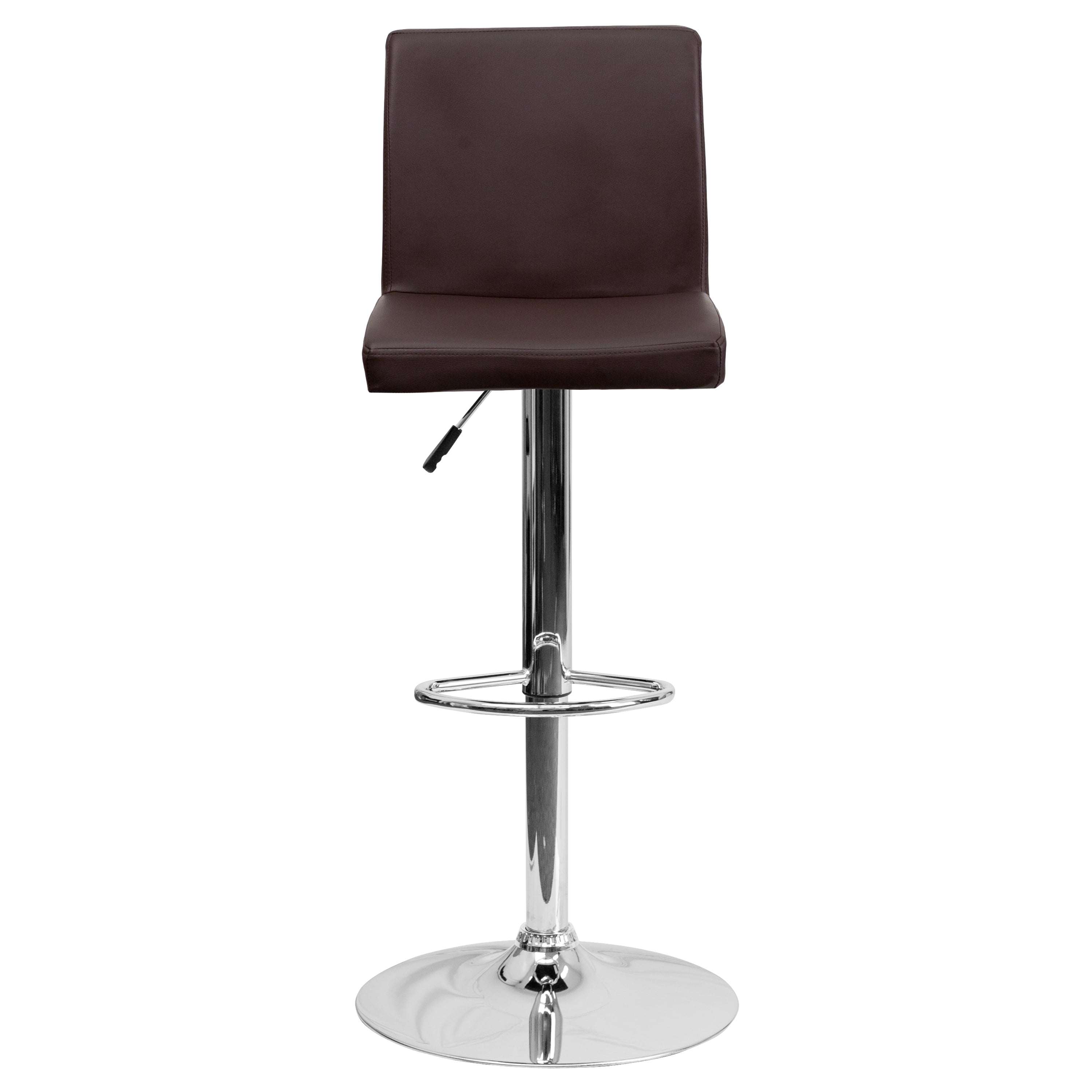 Flash Furniture 2 Pk. Contemporary Brown Vinyl Adjustable Height Barstool with Panel Back and Chrome Base