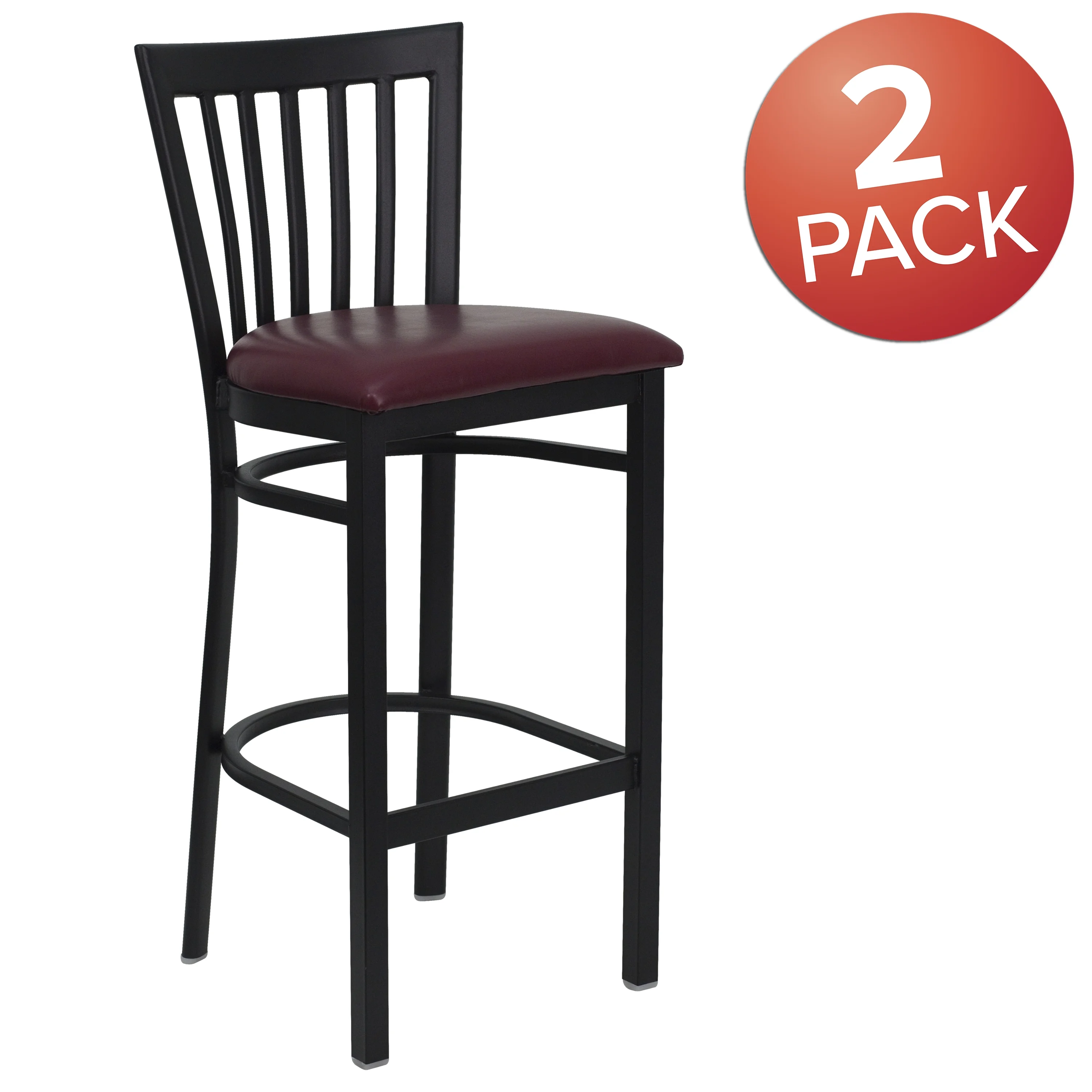 Flash Furniture 2 Pk. HERCULES Series Black School House Back Metal Restaurant Barstool – Burgundy Vinyl Seat