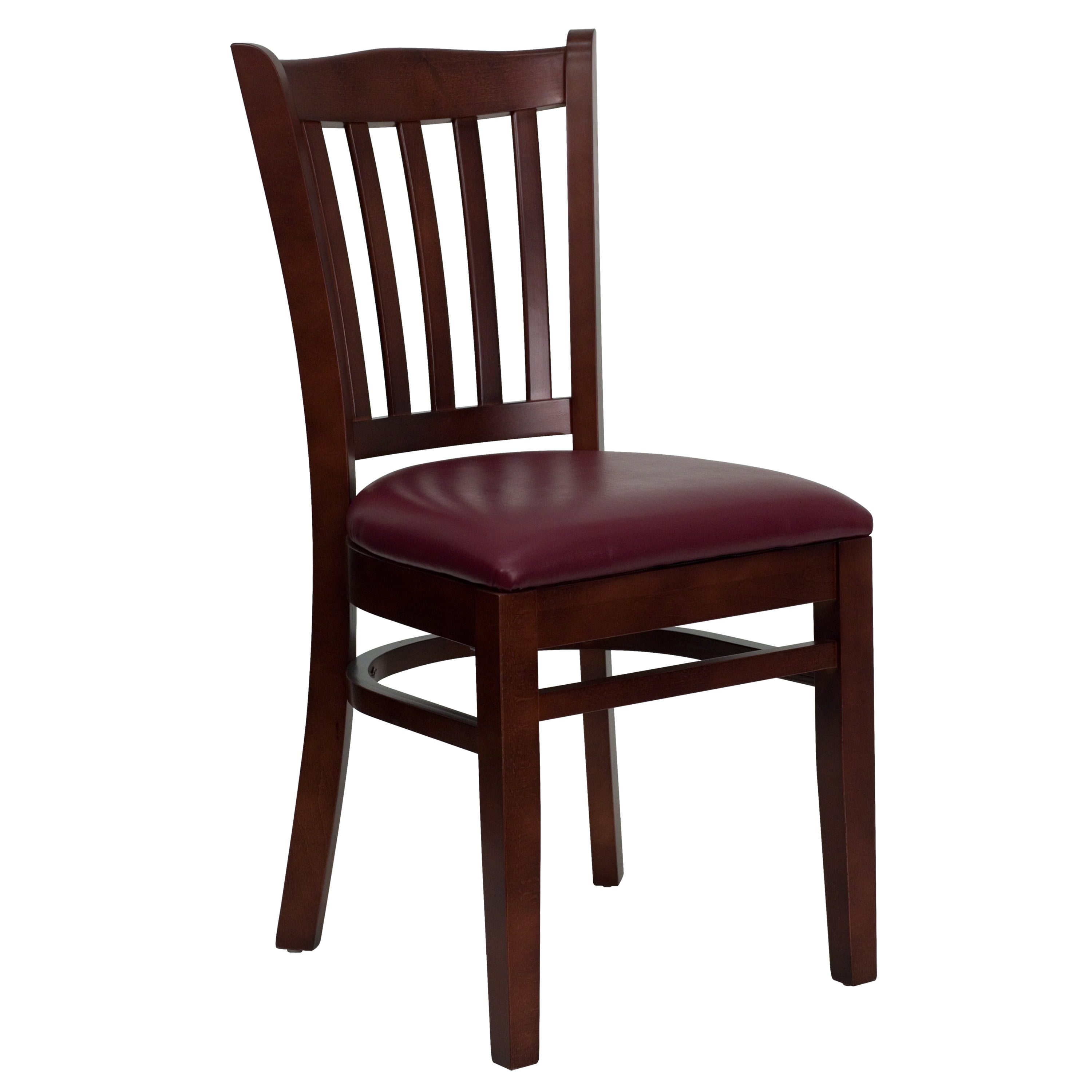 Flash Furniture 2 Pk. HERCULES Series Vertical Slat Back Mahogany Wood Restaurant Chair – Burgundy Vinyl Seat