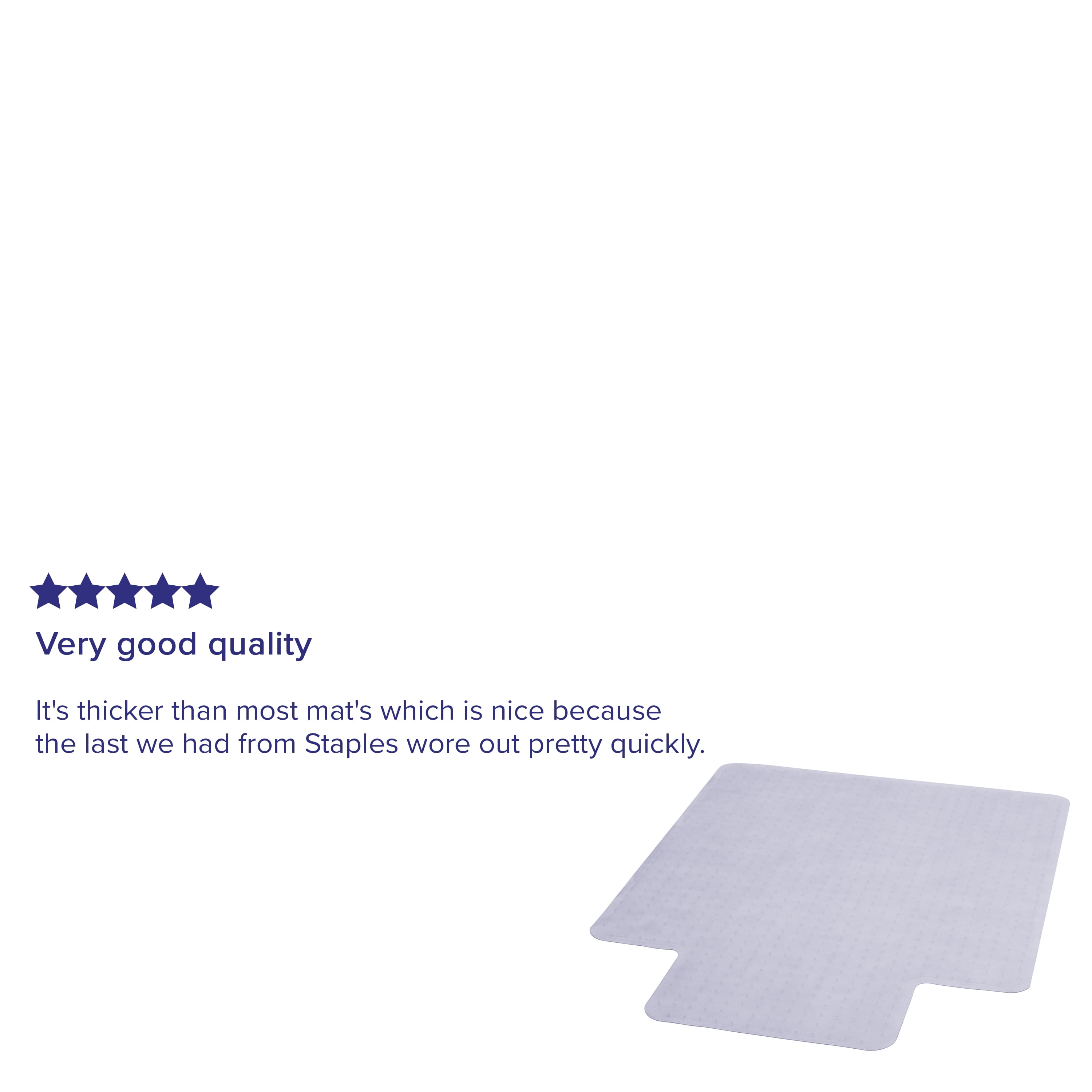 Move around easily in your carpeted workspace with this clear vinyl, commercial grade chair mat that will prevent carpet wear caused by chair casters. It features a scuff and slip resistant top surface for durability and safety. The underside has a gripper back to firmly anchor the chair mat on low pile carpet, protecting your carpet from spills and damage. The mat includes a protruding lip to protect the carpet under the desk and allow the chair to roll even when it’s all the way under the desk.