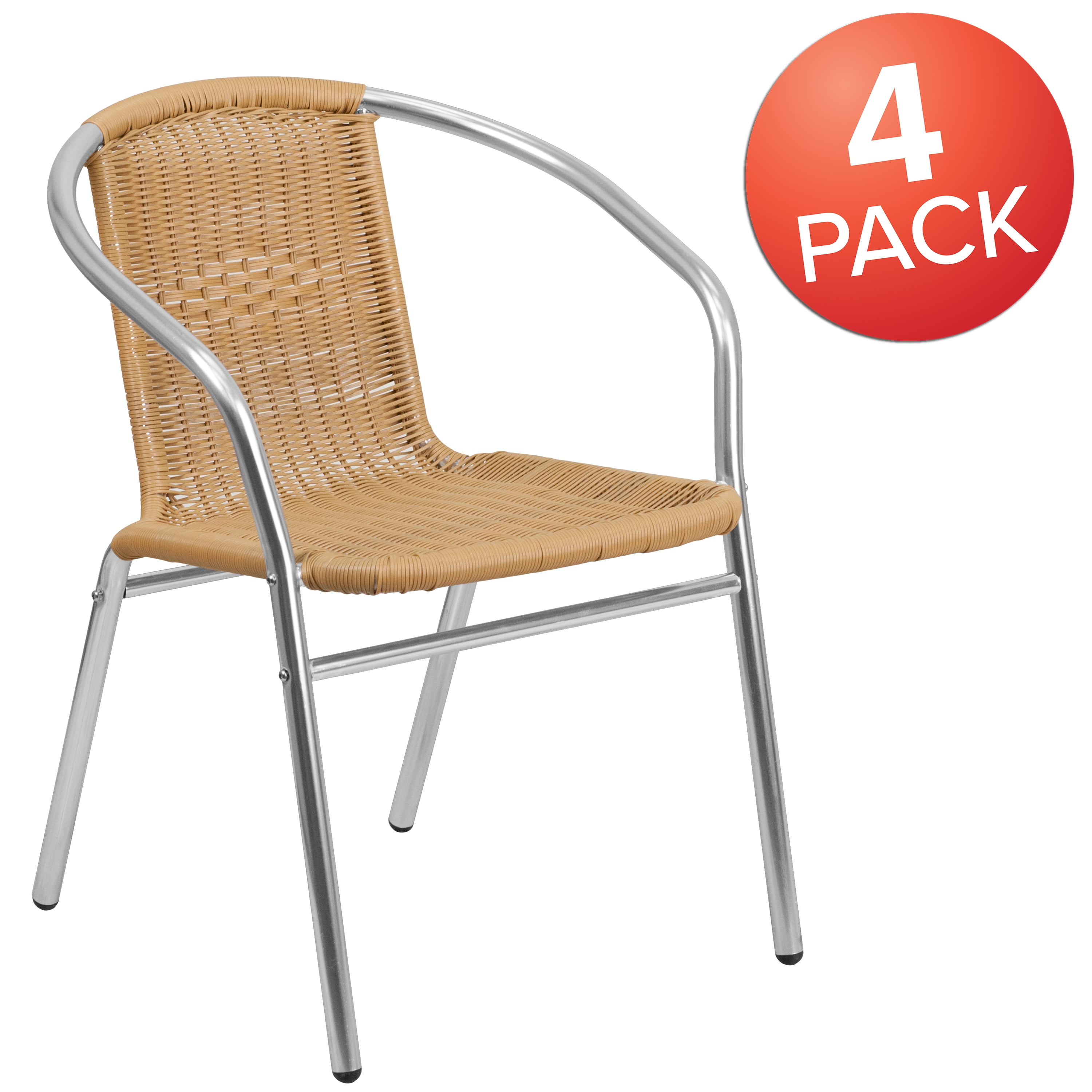 Flash Furniture 4 Pack Commercial Aluminum and Beige Rattan Indoor-Outdoor Restaurant Stack Chair