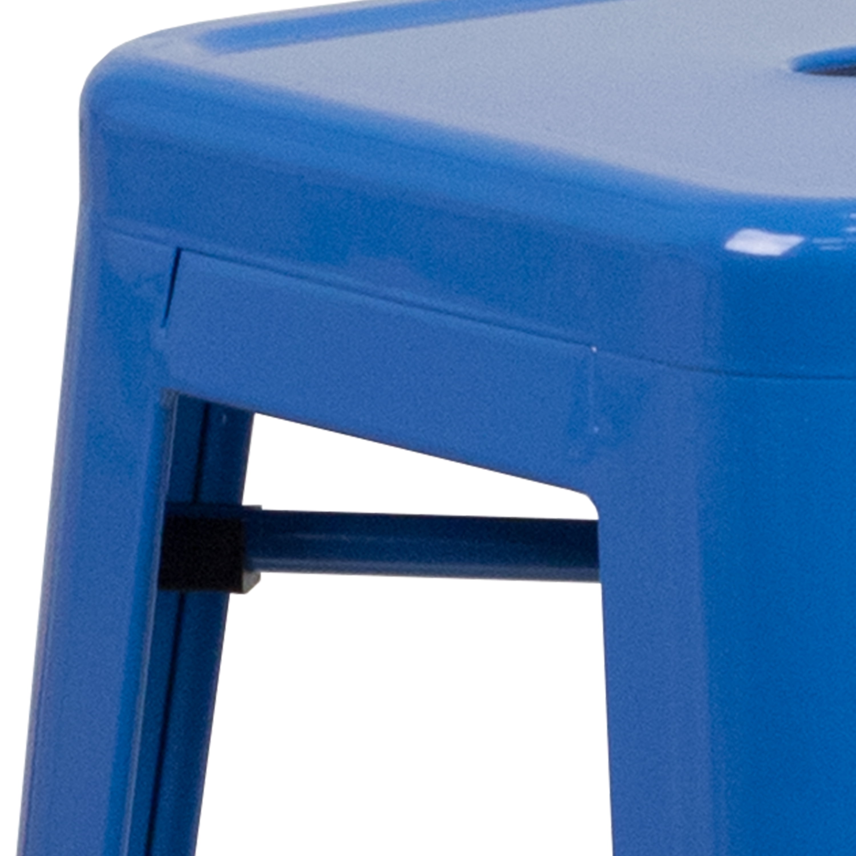 Let the clean lines and simple design of this square, industrial style barstool add a modern appearance to your home or business with this colorful bar height stool. This space-saving stool is stackable making it great for storing. This stool features a backless, lightweight design that is easy to move from your dining room to the patio or sidewalk. A cross brace underneath the seat adds extra stability and features plastic caps that prevent the finish from scratching when stacked. The lower support brace doubles as a footrest and protective floor glides prevent damage to flooring. This all-weather use stool is great for indoor and outdoor settings. For longevity, care should be taken to protect from long periods of wet weather. The unique design of this backless stool gives it the versatility to be used in multiple spaces.